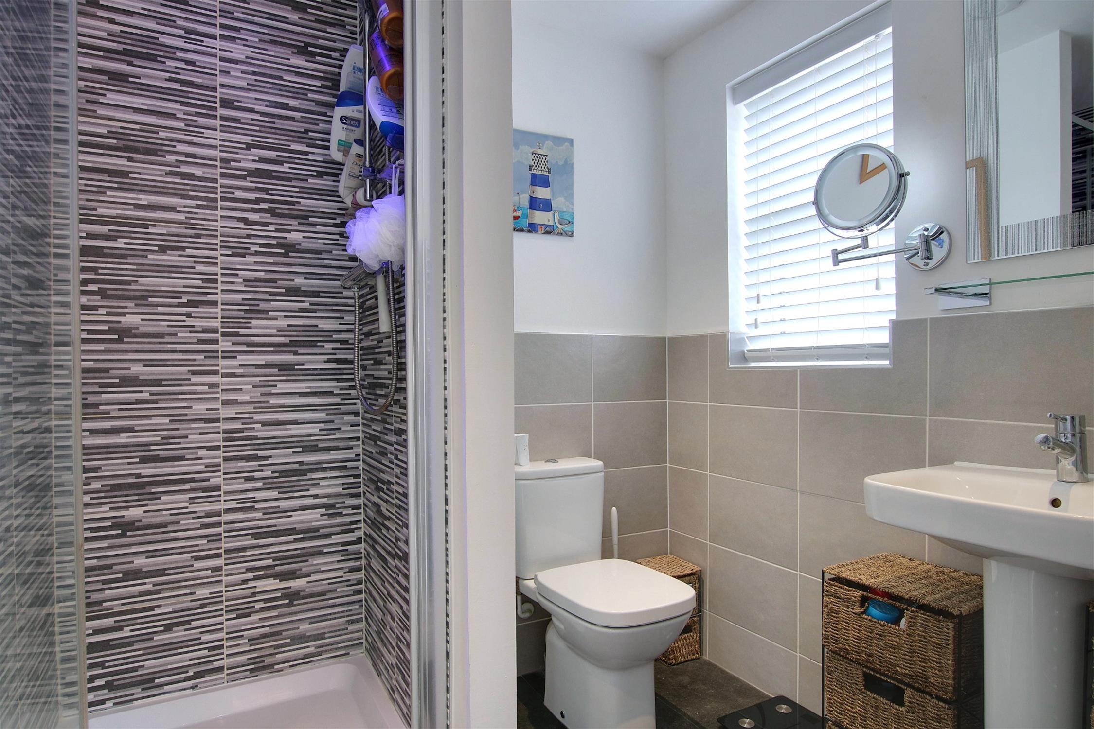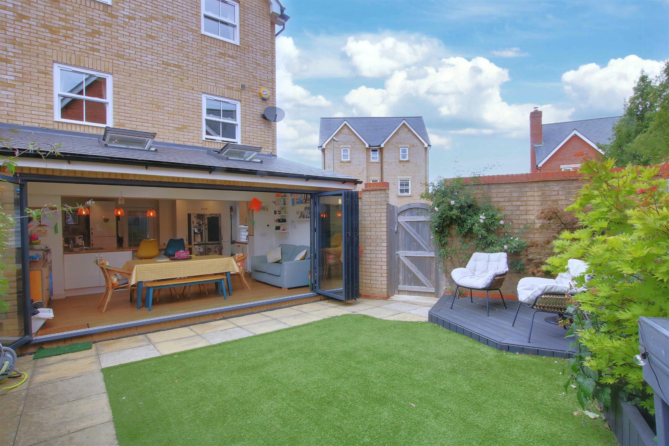 Outside to the front is an area of garden enclosed by wrought-iron fencing laid to lawn with some flowers and shrubs, and gated access to the low-maintenance rear garden which has an area of artificial turf bordered by paving, a raised decking area, and a path providing rear access to the large garage (6m x 3m) which has a remotely controlled up-and-over door, power and light, generous loft storage, and an adjacent parking space. Cabling has also been installed by our clients suitable for EV charging.