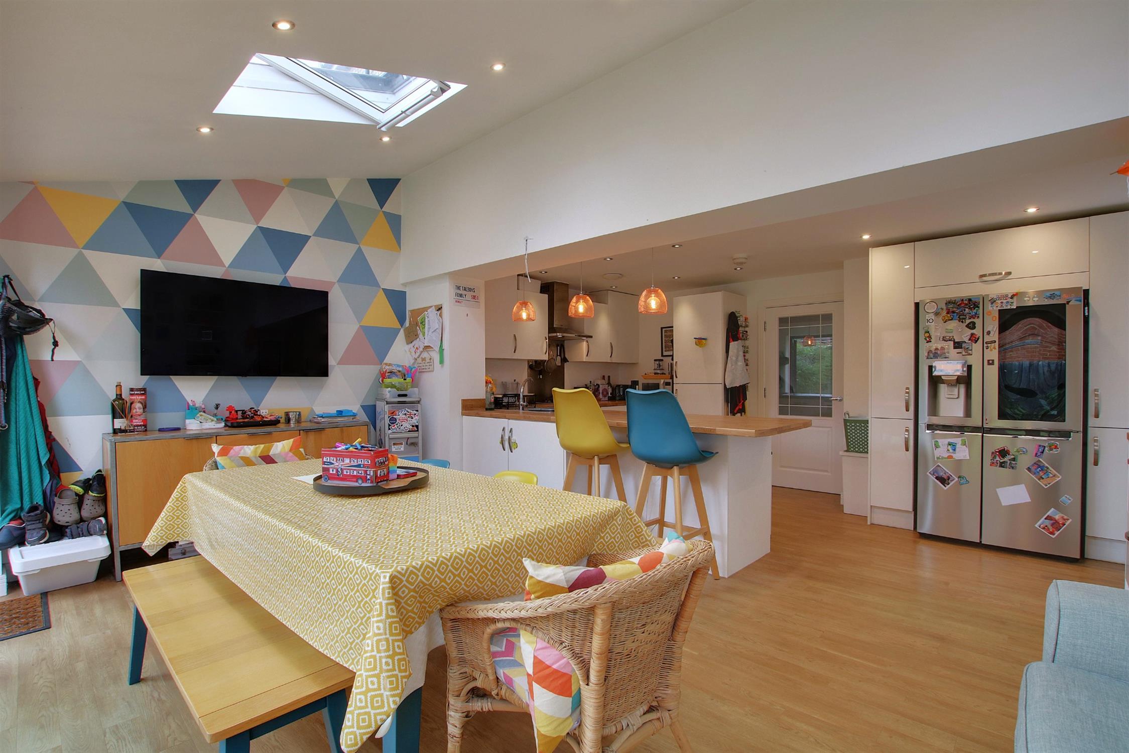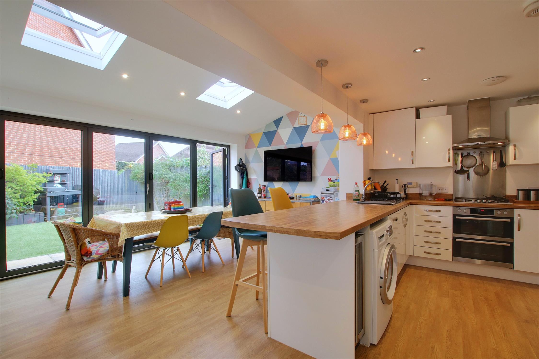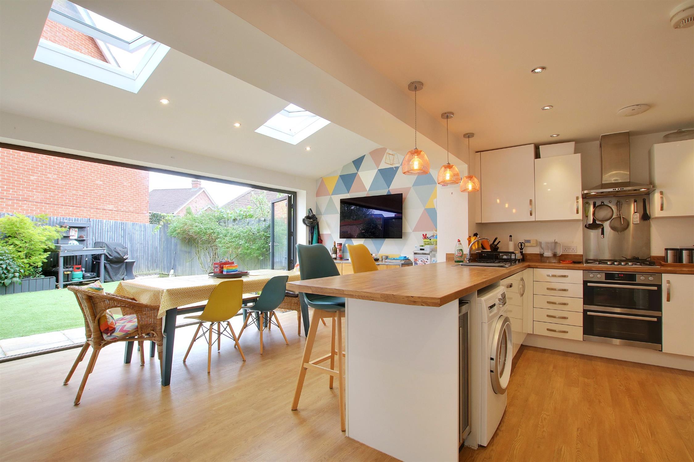One of the property's undoubted features, a genuine wow factor, is the extended kitchen/family room which is well-appointed with stylish modern units and some integrated appliances, and full width bi-folding doors which seamlessly connect the interior and exterior creating a terrific space for socialising and entertaining