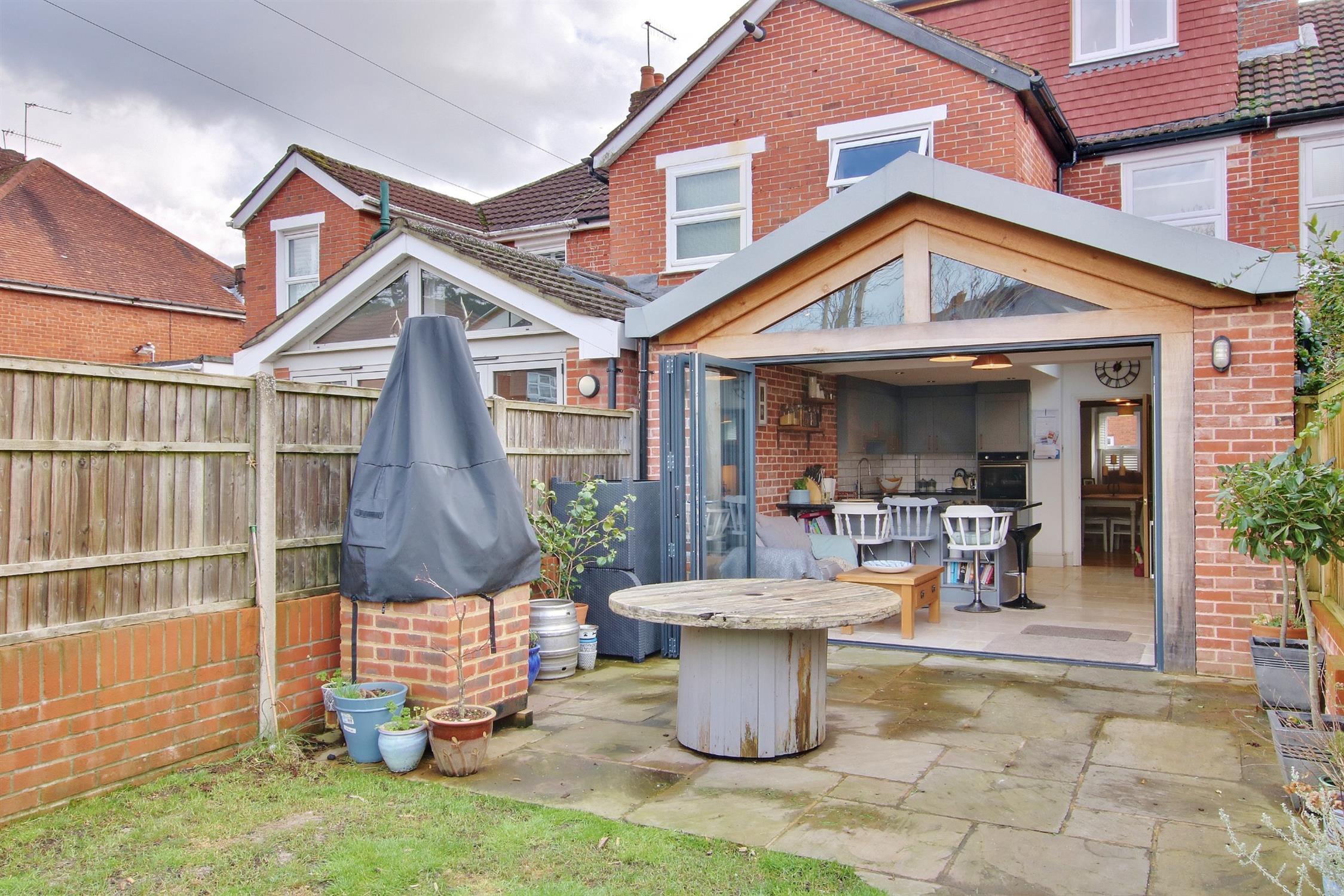 A simply stunning Edwardian town house, creatively extended and refurbished to an exceptional standard by our clients. The open plan sitting and dining rooms feature stripped flooring and a wood burning stove, and these lead into a striking kitchen/family room which, in turn, links seamlessly with the outside via tri-folding doors creating a wonderful space for relaxation and entertaining. On the first floor are two bedrooms and a stylish bathroom and, on the second floor, a large bedroom cleverly converted from the original loft space.