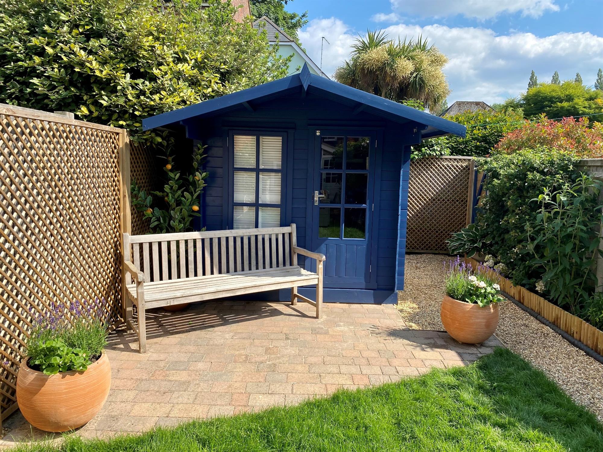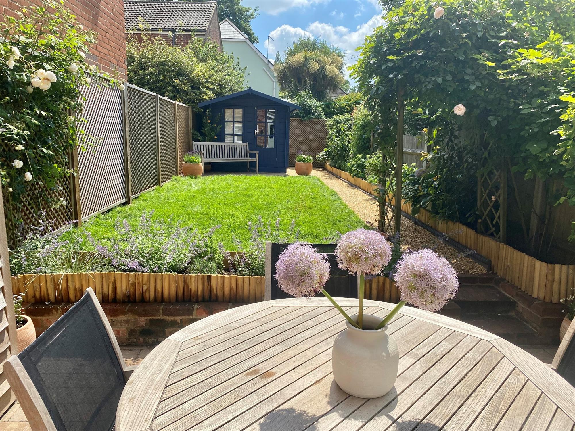 Enclosed garden to the front with original tiled path, gate and railings. There is pedestrian access to the lovely south facing and private rear garden which is principally laid to lawn with patio for al-fresco dining, summer house, log store, and external power point. There is resident and visitor permit parking available, the vendors currently holding a permit to park in nearby Knatchbull Close.