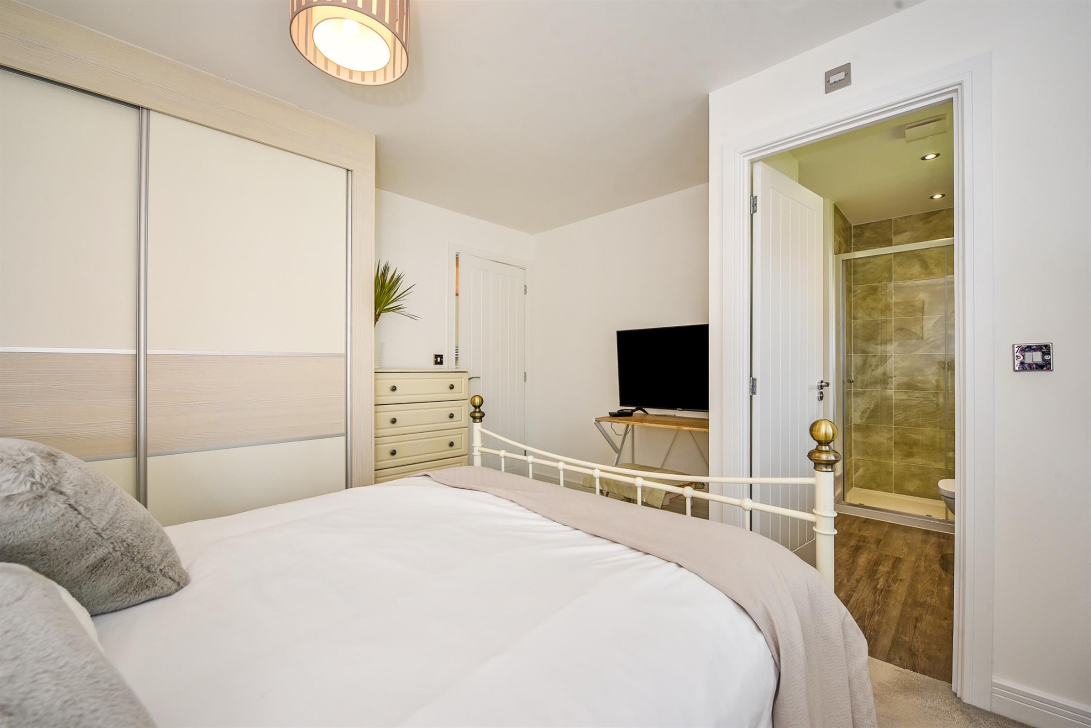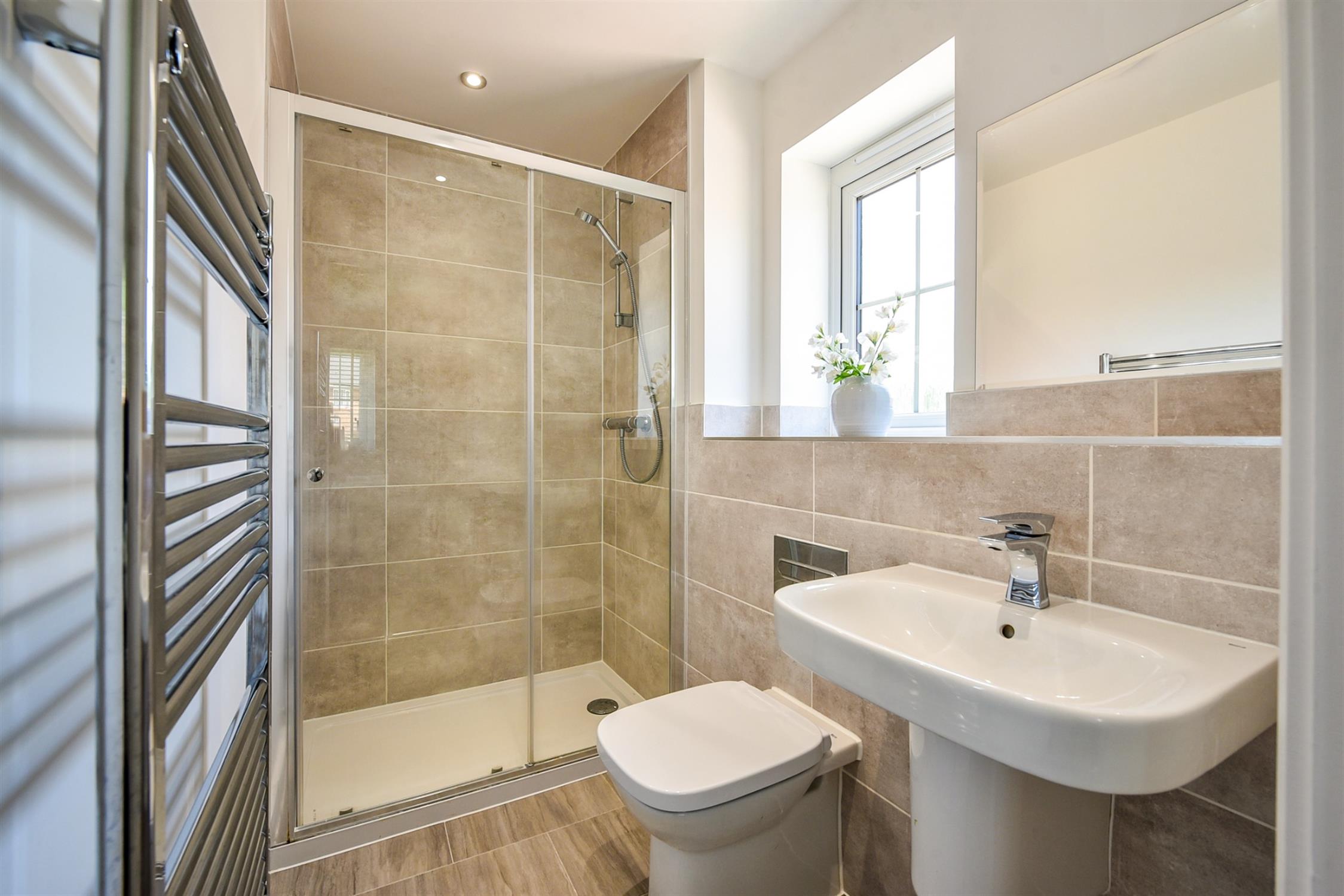 The first floor landing provides access to the bedrooms, loft space and also houses the airing cupboard. The master bedroom has a range of built-in wardrobes and a stylish en-suite with large shower cubicle, Roca fittings and complementary wall and floor tiling, whilst the second bedroom has a fitted double wardrobe and its own well-appointed en-suite shower room. The remaining two bedrooms are both doubles and these share the family bathroom which is similarly styled and finished.