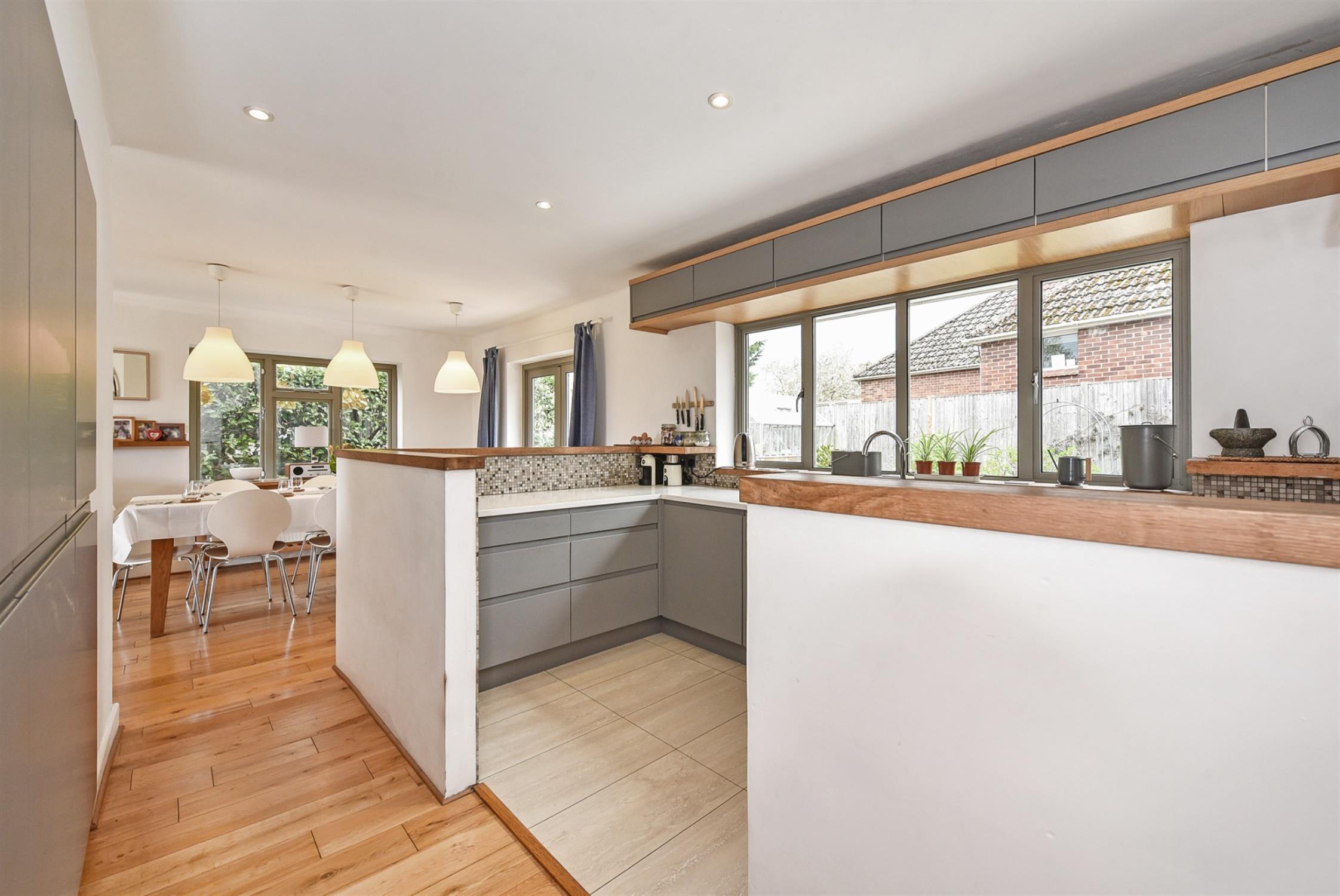 The property is discreetly positioned on a mature plot extending to just under one-fifth of an acre with driveway parking for at least three cars and a large attached garage. Another practical feature is the external covered area with lighting which can be used to store garden equipment, bikes, and muddy boots. This connects to the garage and utility area with sink, plumbing for washing machine and space for tumble dryer, freezer etc. This area also contains the Vaillant combination central heating boiler.