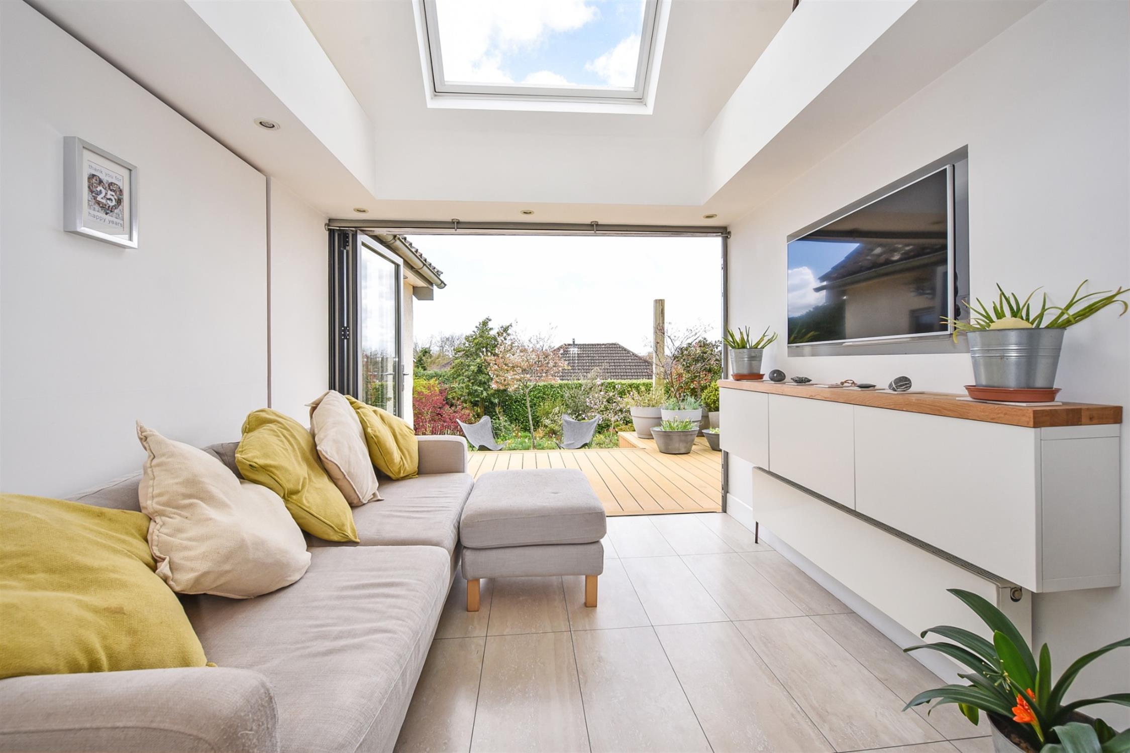 The master bedroom has a window to the front aspect and a dressing area connected to the en-suite which has a tiled shower cubicle, his-and-hers wash basins, and WC. There are two additional double bedrooms both with built-in storage and one housing the airing cupboard, these rooms sharing the modern and well-equipped family bathroom. Completing the internal accommodation is the sun room which adjoins the sun-terrace through connecting tri-folding doors and is further well-lit naturally through a remotely controlled rain-sensitive Velux window with integral blind. A particular feature, and one of our favourites, is the ability to cleverly convert the sun room into an occasional fourth bedroom by closing a hinged wall, thereby separating this room from the hallway.
