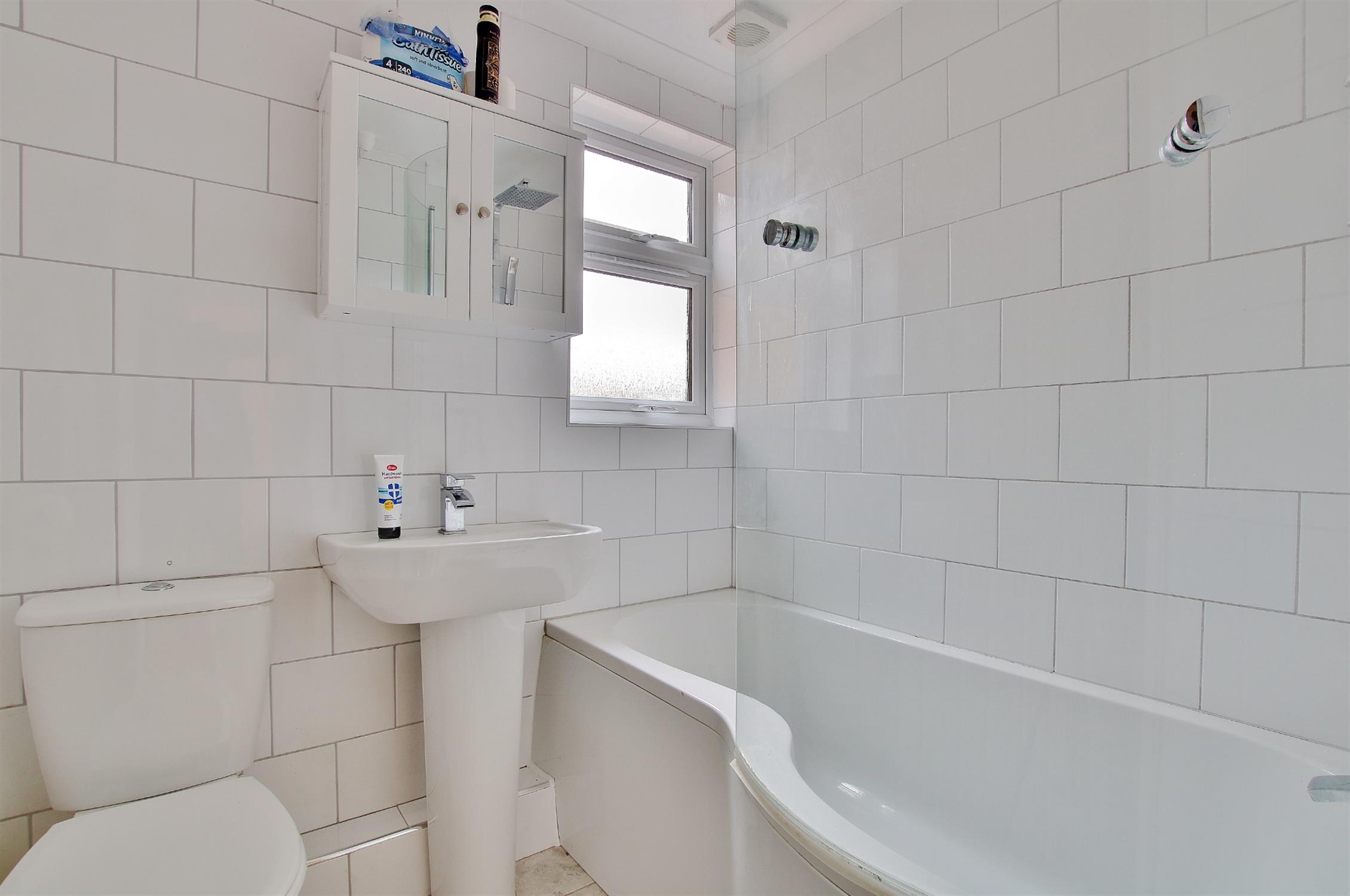 Refitted with a modern suite comprising p-shaped panel enclosed bath with shower enclosure and screen, pedestal wash basin with monobloc waterfall tap, low-level WC, tiled walls and floor, extractor fan, heated towel rail, double-glazed window to the rear.
