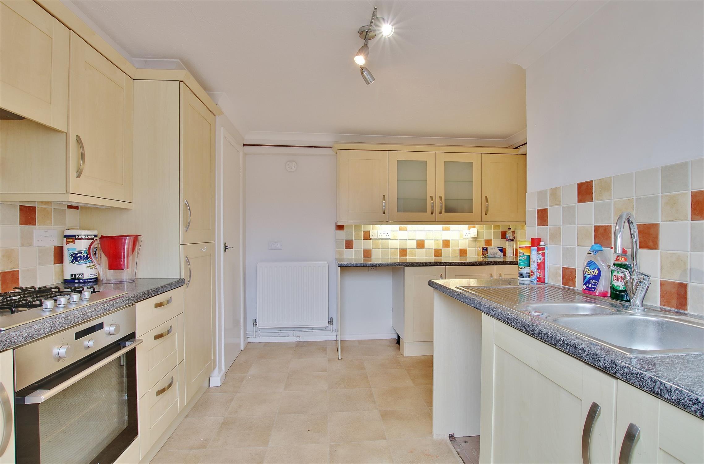 Well fitted with an excellent range of modern wall and base units with work surfaces over and tiled surrounds, inset one-and-a-half-bowl single drainer stainless steel sink unit with mixer tap over, fitted cupboards, built-in electric oven and 4-ring gas hob with extractor over, plumbing for washing machine, space for fridge, radiator, double-glazed window and door to the rear.