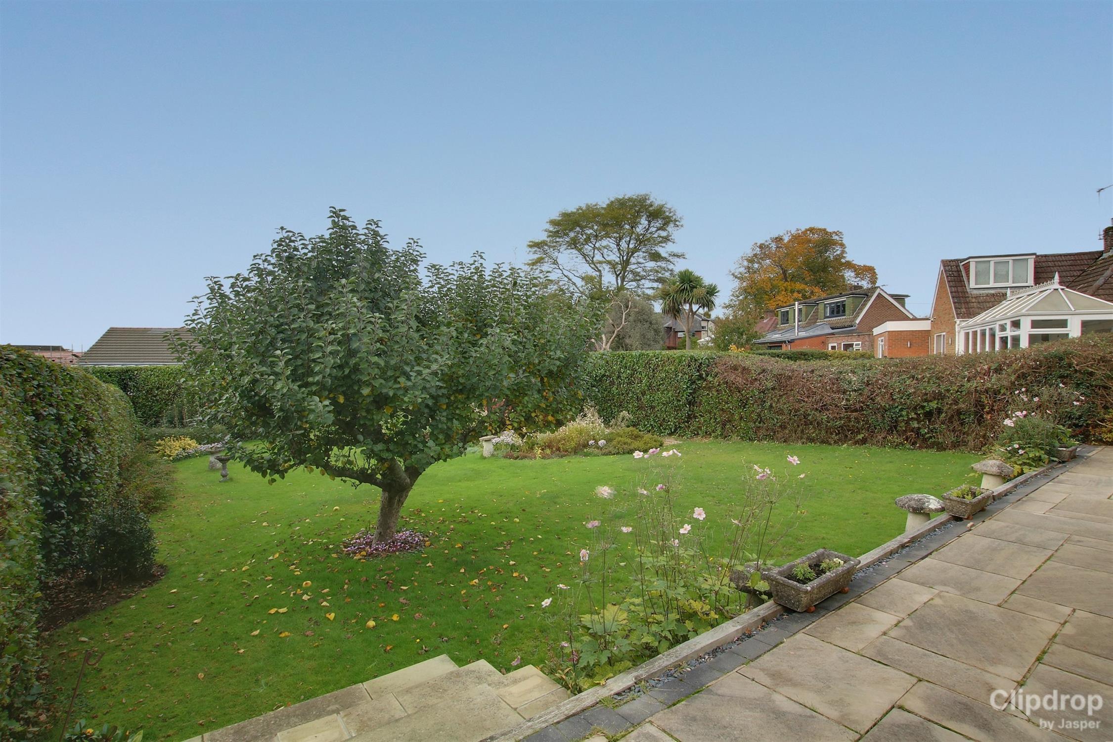 The fifth of an acre plot is primarily afforded to the rear garden with established borders, a spacious elevated patio area perfect for alfresco entertainment, and a large established lawn. The garage and workshop offer ideal storage space with a service door to the rear and up and over door to the front. The plot size and property layout do present the opportunity for further expansion of the living accommodation, above, to the rear and to the side (STP). To the front aspect is a neat driveway for at least three vehicles and a smart front garden, which could be landscaped to provide further parking subject to permission.