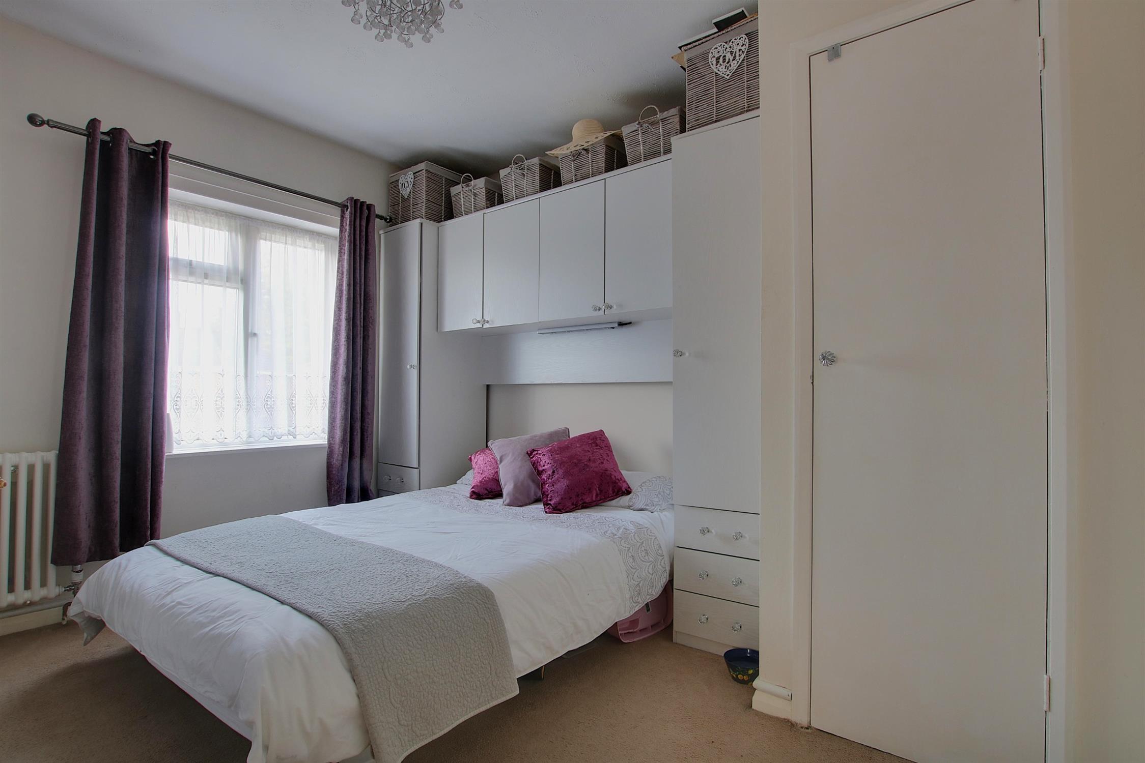 Radiator, double-glazed window to the front, fitted double wardrobe with sliding doors.