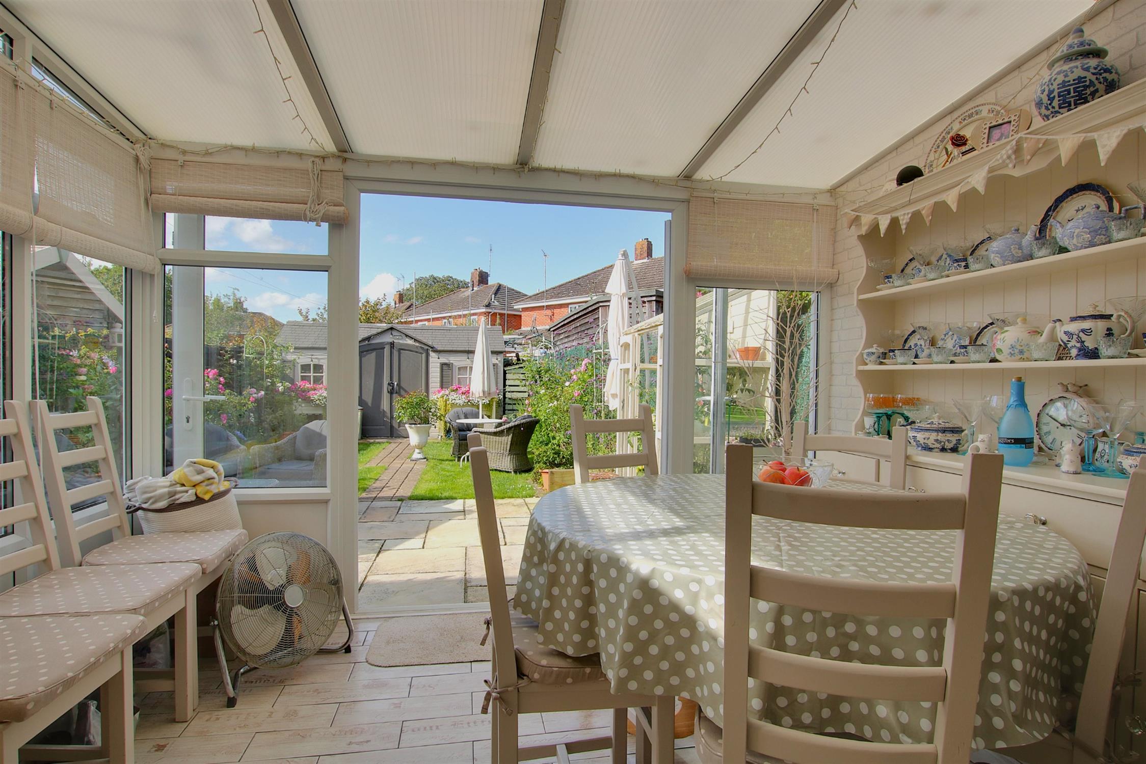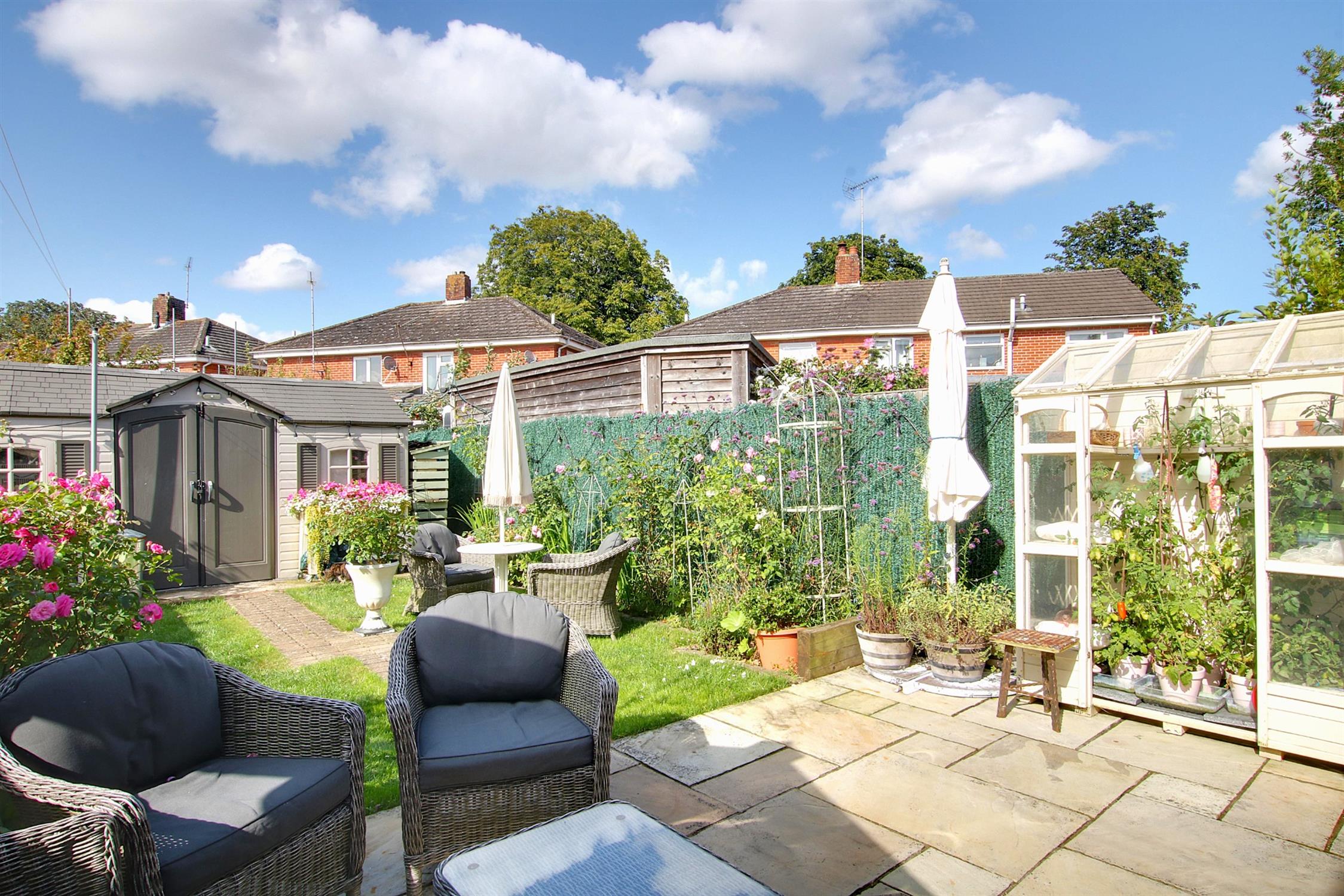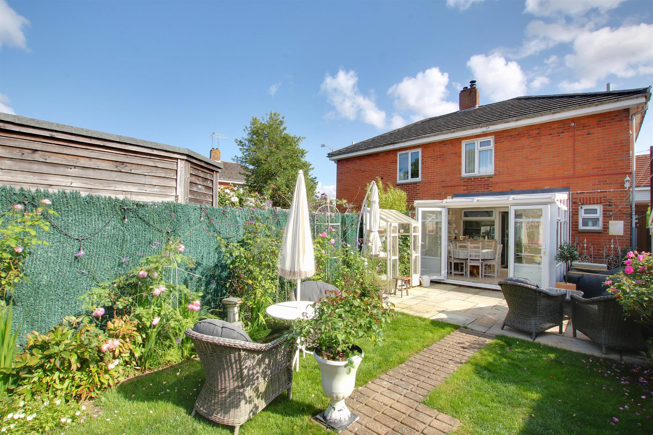 The front is mostly laid to shingle with a concrete path to the front door and off-road parking for up to three cars. A side gate provides access to the lovely rear garden which has a large Indian Sandstone patio ideal for barbecues and al-fresco dining, a further area laid to lawn with well stocked flower and shrub borders, and path leading to a Lifetime Shed (15' x 8') with power connected and behind which is additional garden/equipment storage space.