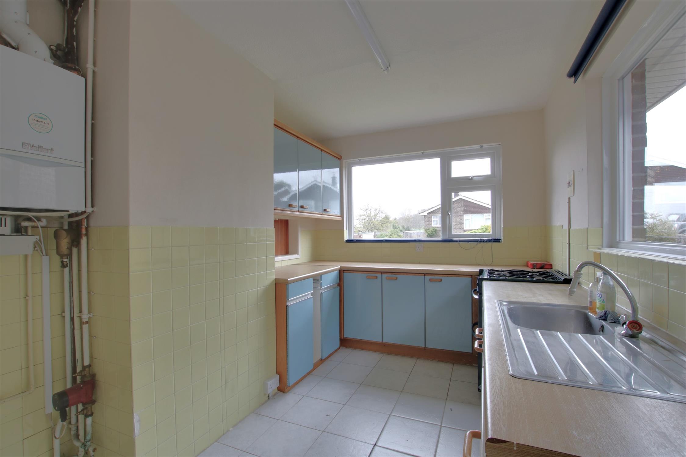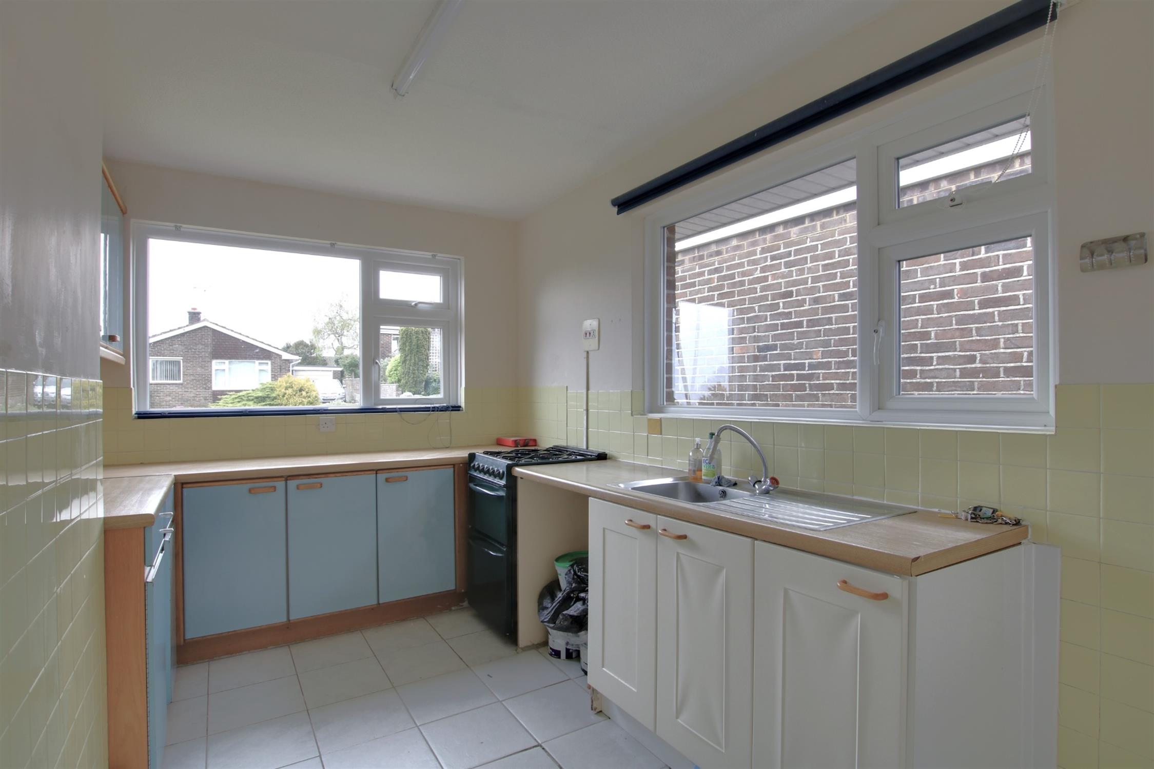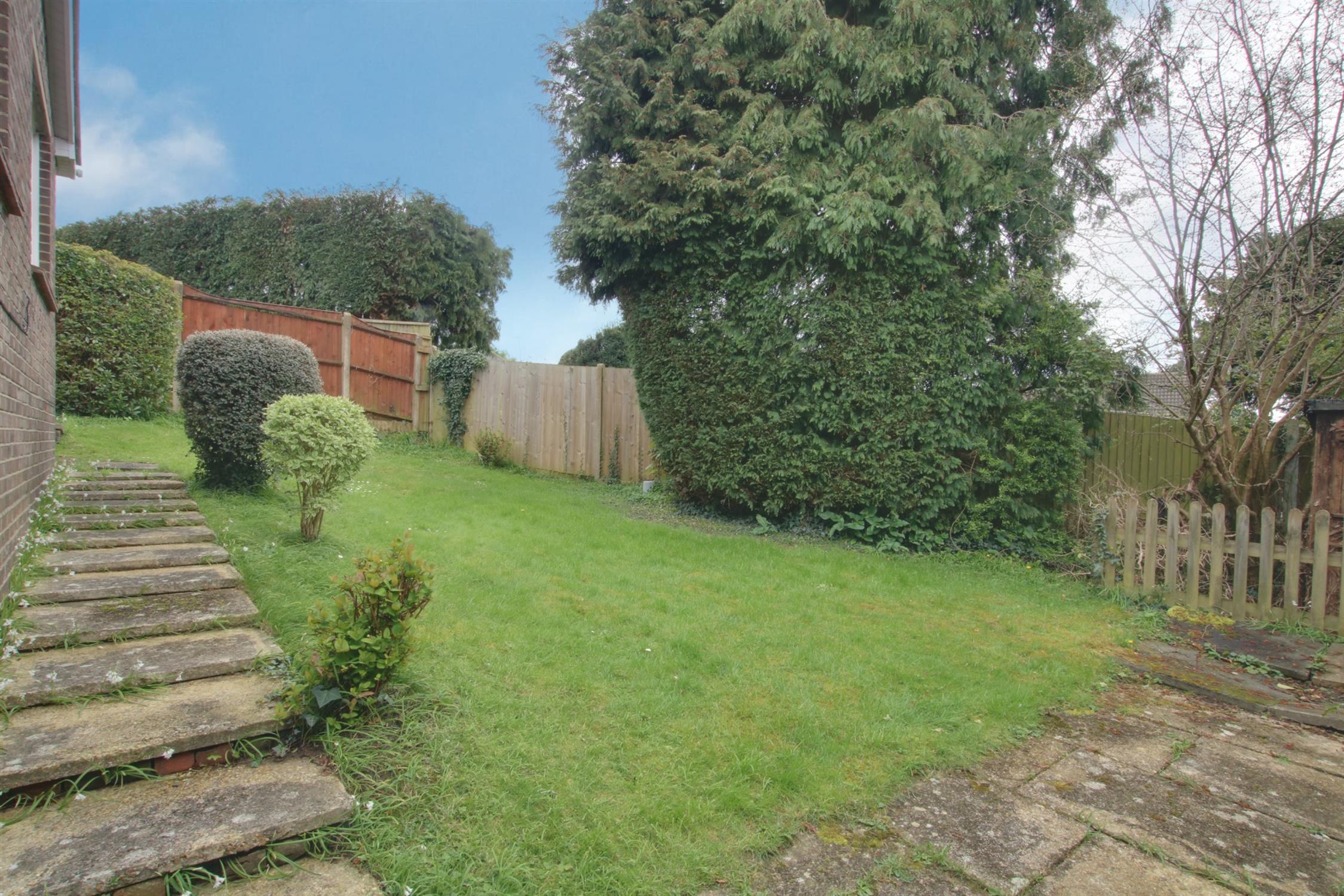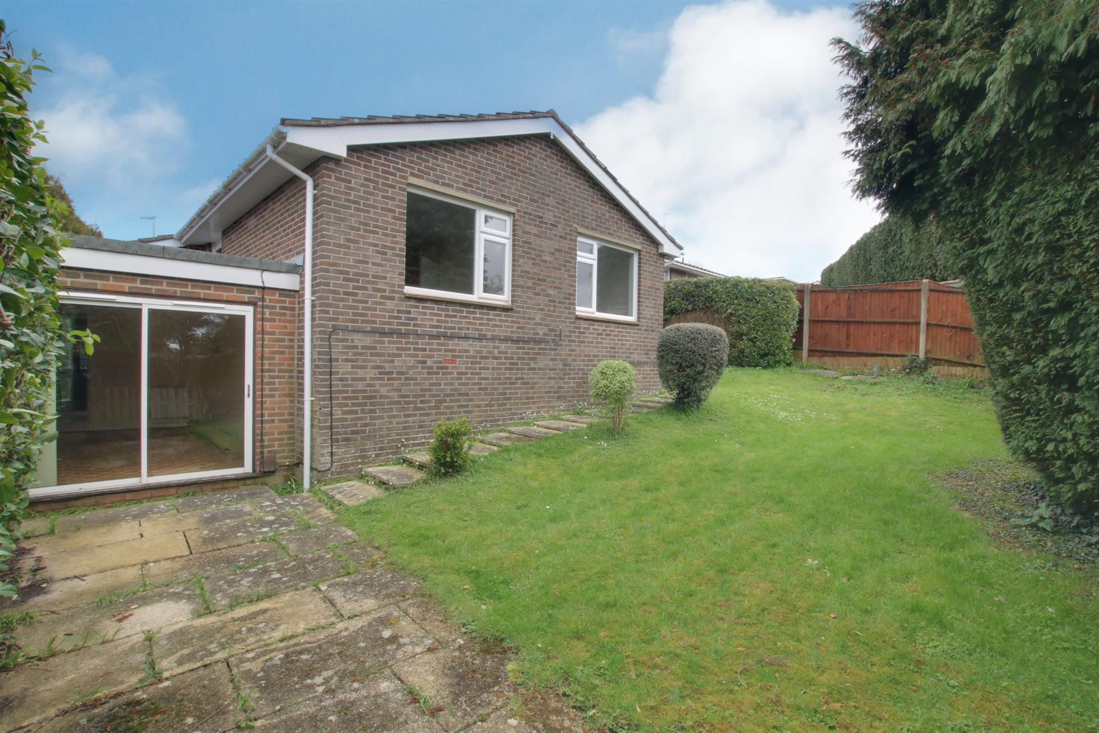 To the front, steps lead down to an entrance hall and into the very spacious, extended ground floor living room or bedroom, with patio doors out into the rear garden. To the front side, with flat level access, a door directly accesses the kitchen and on into the inner hallway, leading on to the sitting room, family bathroom and three double bedrooms. The kitchen and sitting room could be opened up to create a large open-plan kitchen/diner family room. Moreover, this could be relocated to the lower ground floor level (STP).