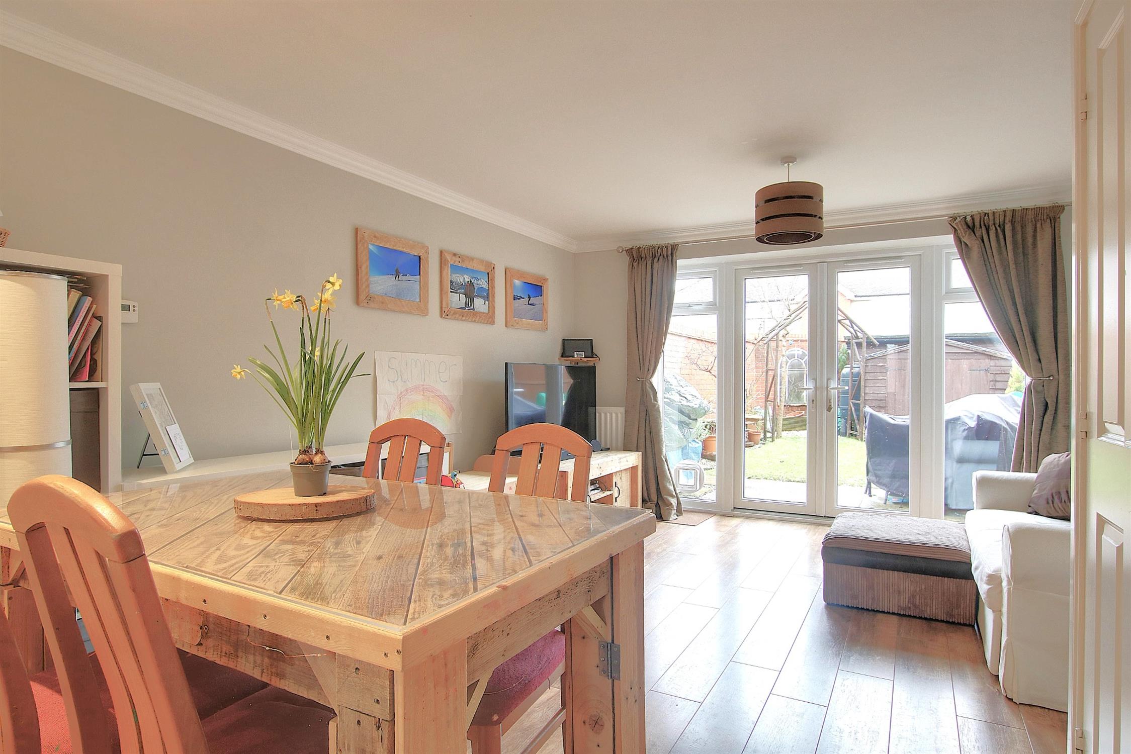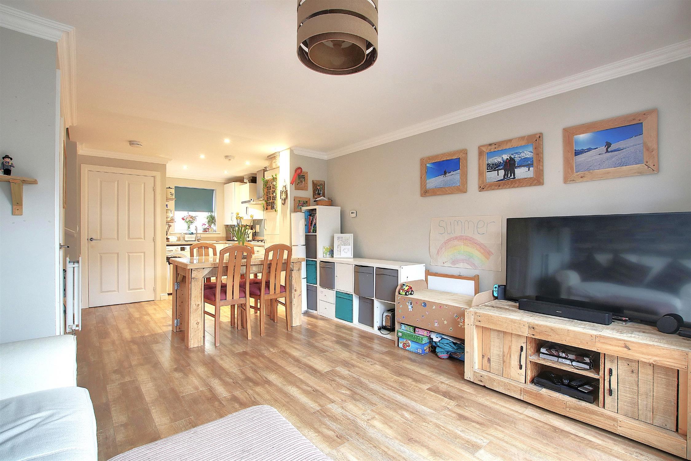 Step inside to experience a thoughtfully designed open-plan living environment where the sitting room, dining area, and sleek modern kitchen flow seamlessly together, creating a light-filled space ideal for both relaxed living and sophisticated entertaining. Two generously proportioned double bedrooms provide tranquil retreats, complemented by a spacious family bathroom and a convenient ground-floor cloakroom.