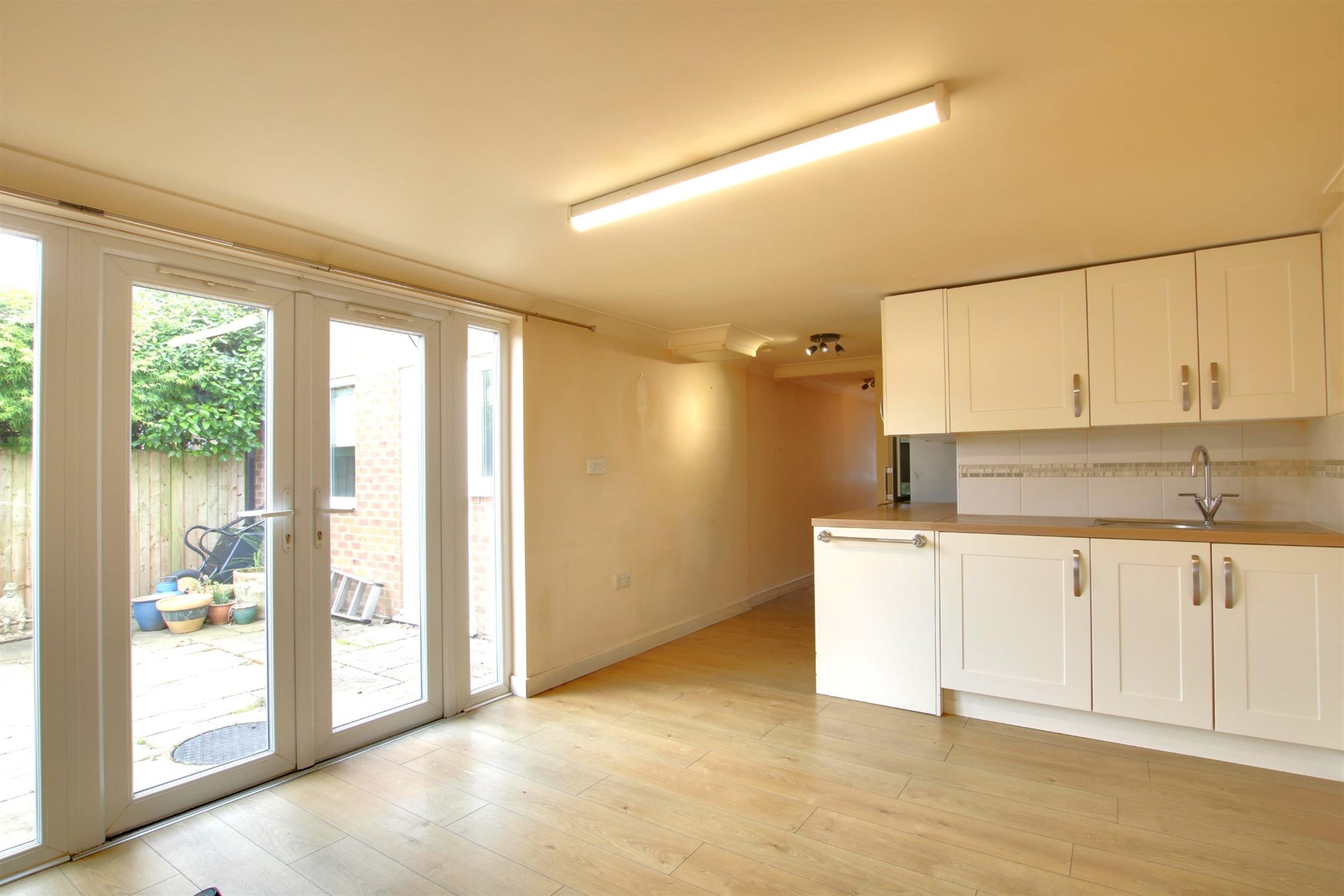 The spacious sitting room benefits from a bright light front aspect and leads into the neat open-plan kitchen/diner, with a door opening into lovely gardens.