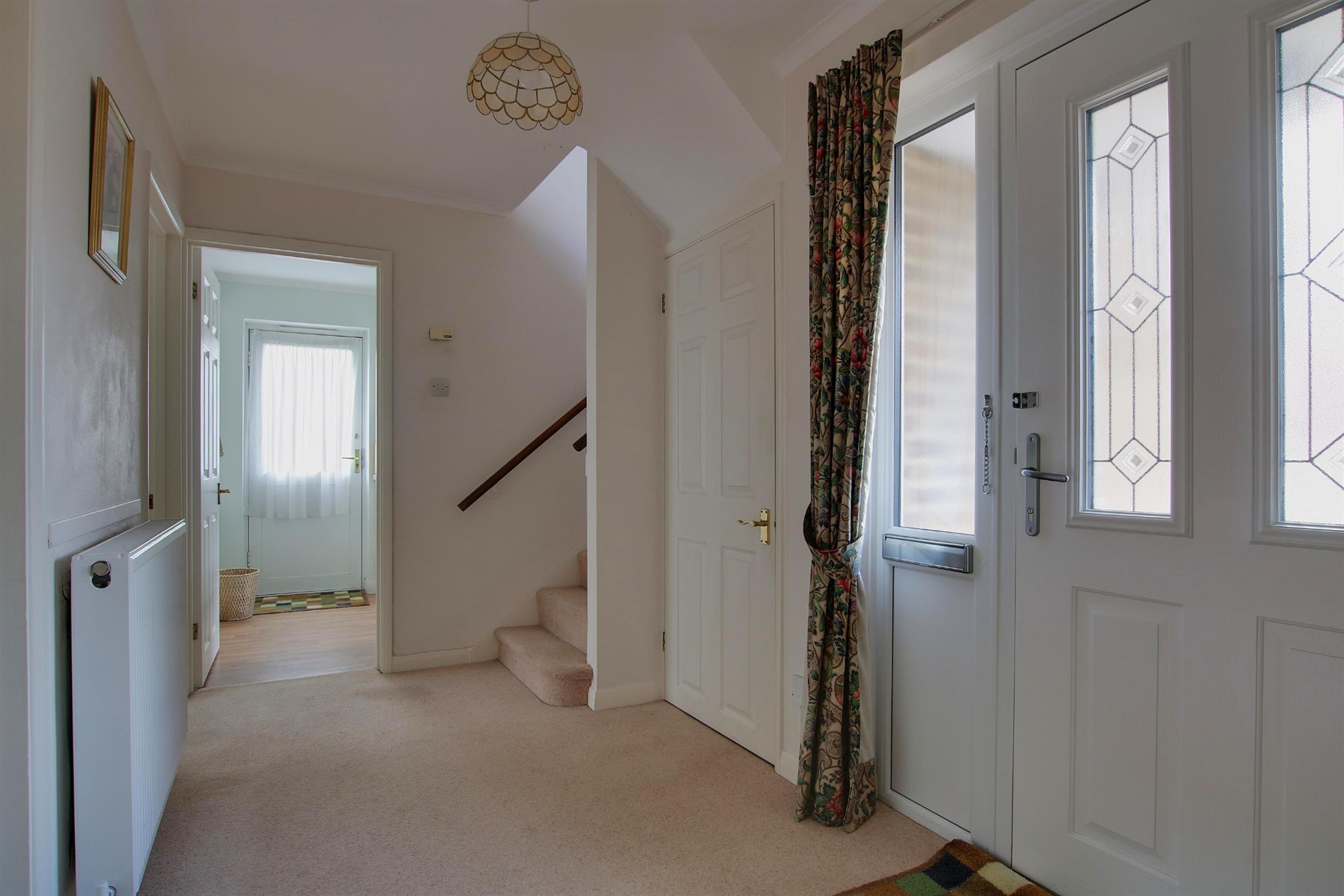 This superb detached family home offers substantial accommodation set on a generous plot, complete with a garage and private driveway. The welcoming entrance hallway, which includes the convenience of a guest cloakroom, provides access to all ground floor rooms. Double doors open into the generously proportioned sitting room, which enjoys a bright, light-filled aspect thanks to a picture window and glazed door leading to the garden. Folding wooden doors connect the sitting room to the dining room, creating a fantastic open-plan entertaining space.