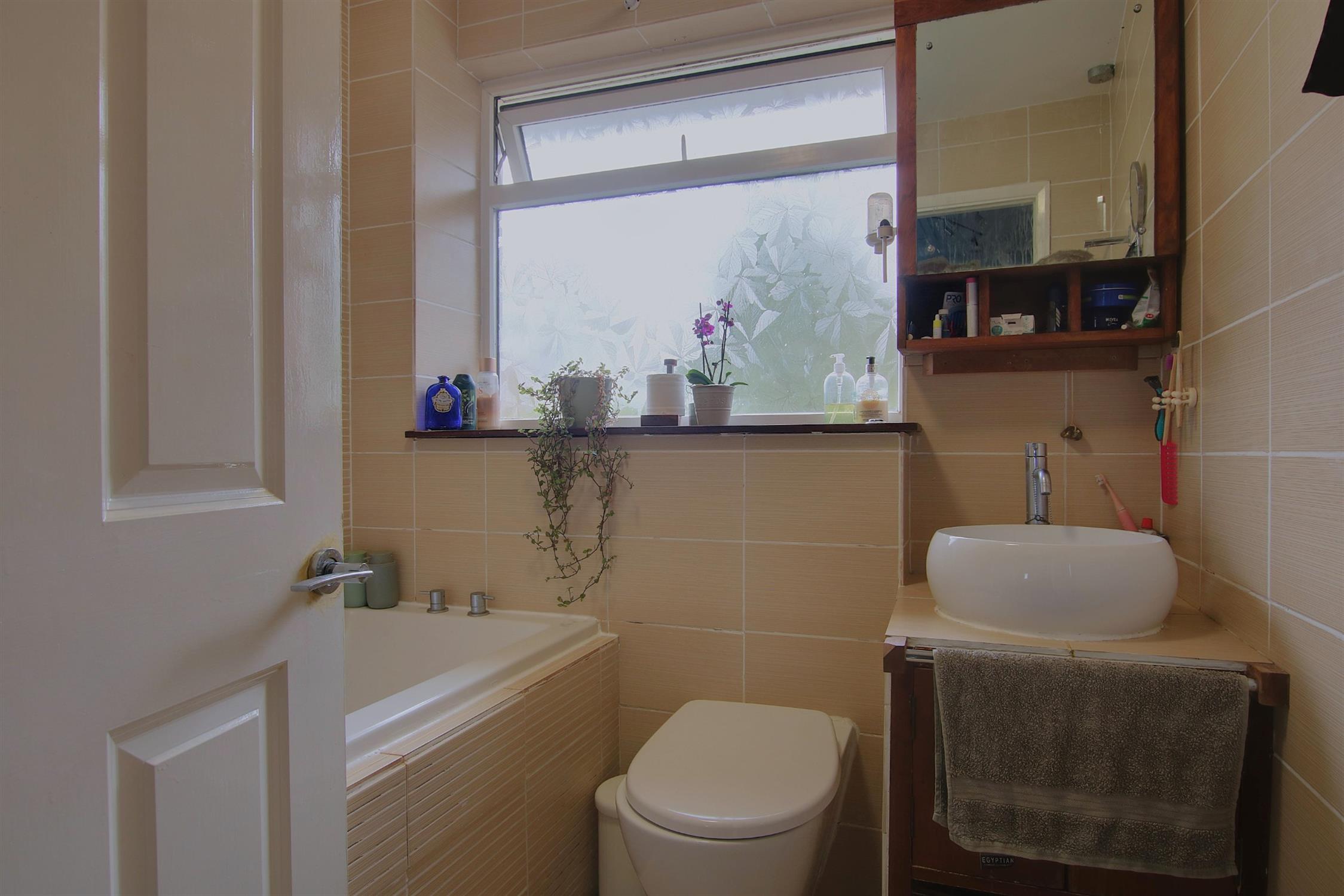 The first floor includes three bedrooms and a family bathroom. The principal bedroom is located at the front with built-in wardrobes. A further double bedroom, also with built-in wardrobes and a generous single bedroom, which could also serve as an office, are all well-proportioned. The family bathroom is modern, featuring a bath with an overhead shower.