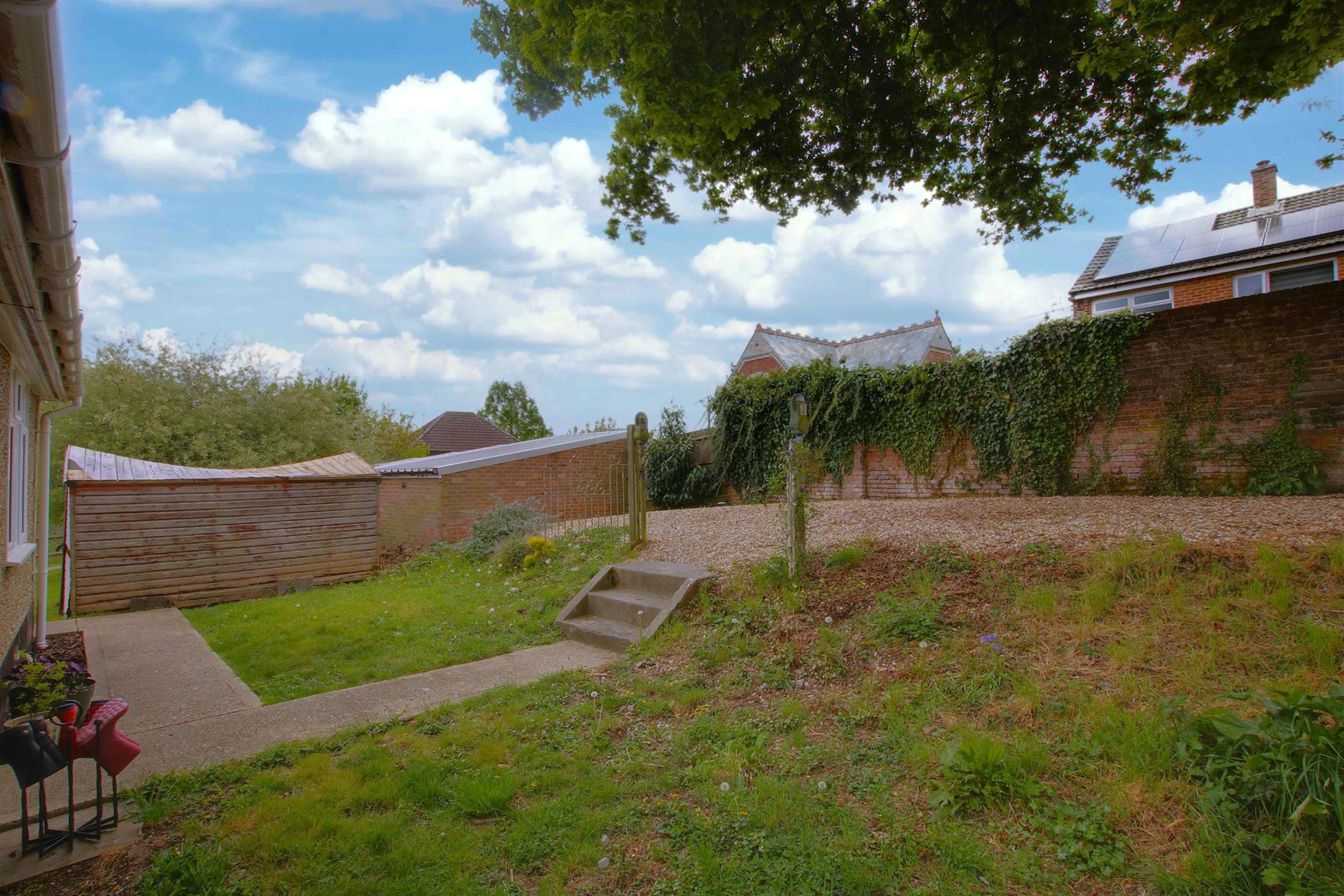 Outside: The property is set within gardens and grounds extending to just under one-fifth of an acre (Promap measurement: 0.187 acres), primarily laid to lawn with a selection of flowers, trees, and shrubs, complemented by a garden shed and patio area. At the far end of the garden, there is gated access leading to a garage block at the rear. To the side of the property, there is a generously sized parking area that can accommodate several cars or other vehicles. This space also offers the potential for a garage, carport, or workshop, subject to the necessary consents or permissions. The parking area is accessed through double gates, which are approached via a long grassy driveway originating from St Blaize Road and running along the rear of the parade of shops on Viney Avenue and properties numbered 19 to 41 Viney Avenue.
