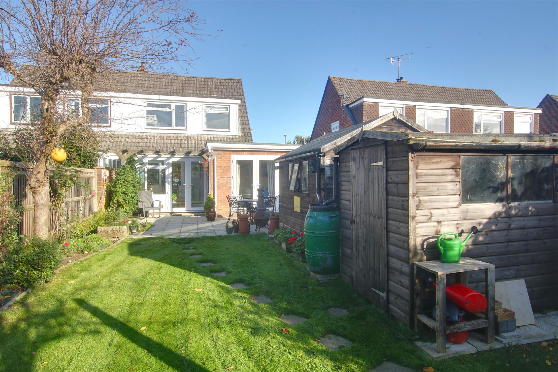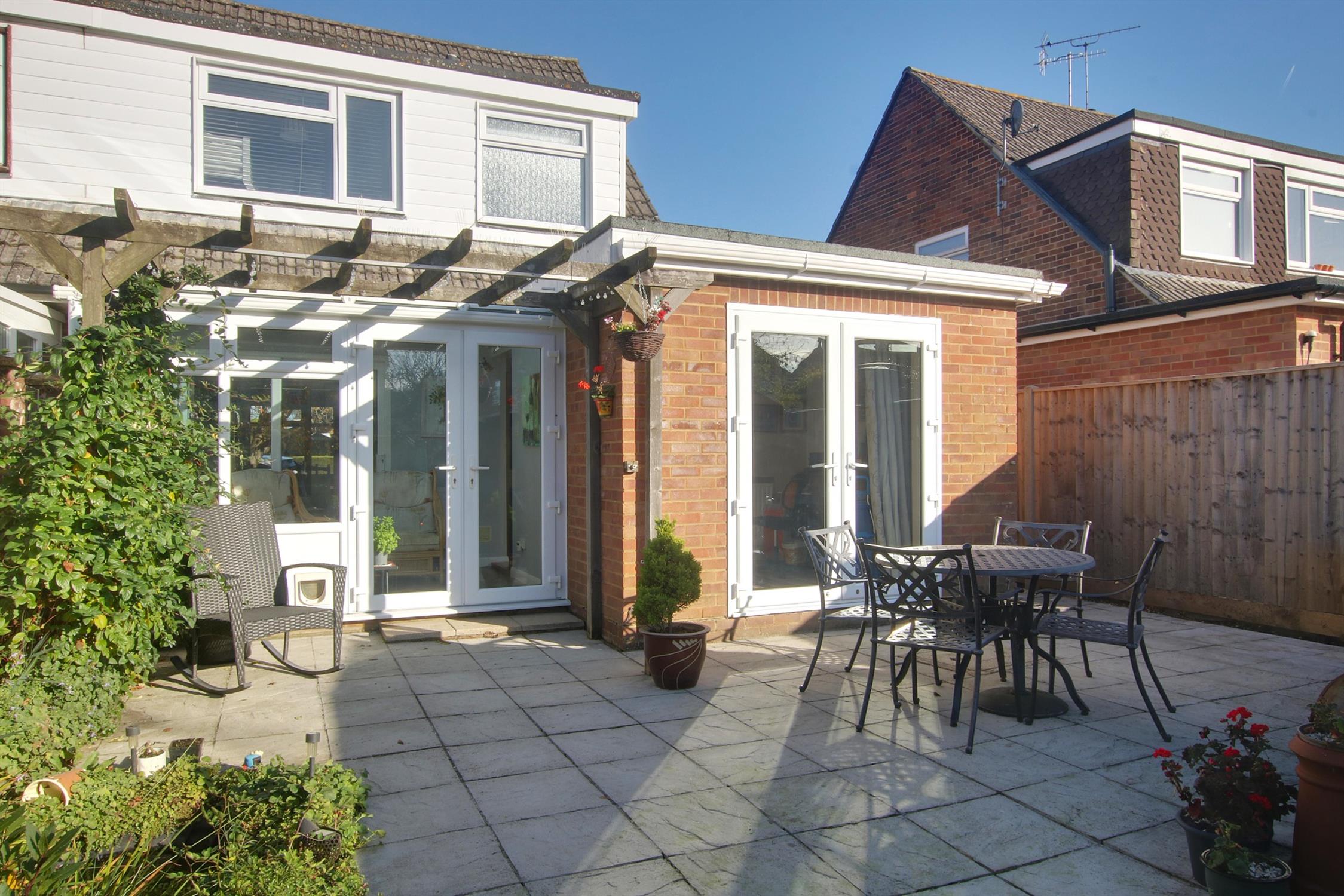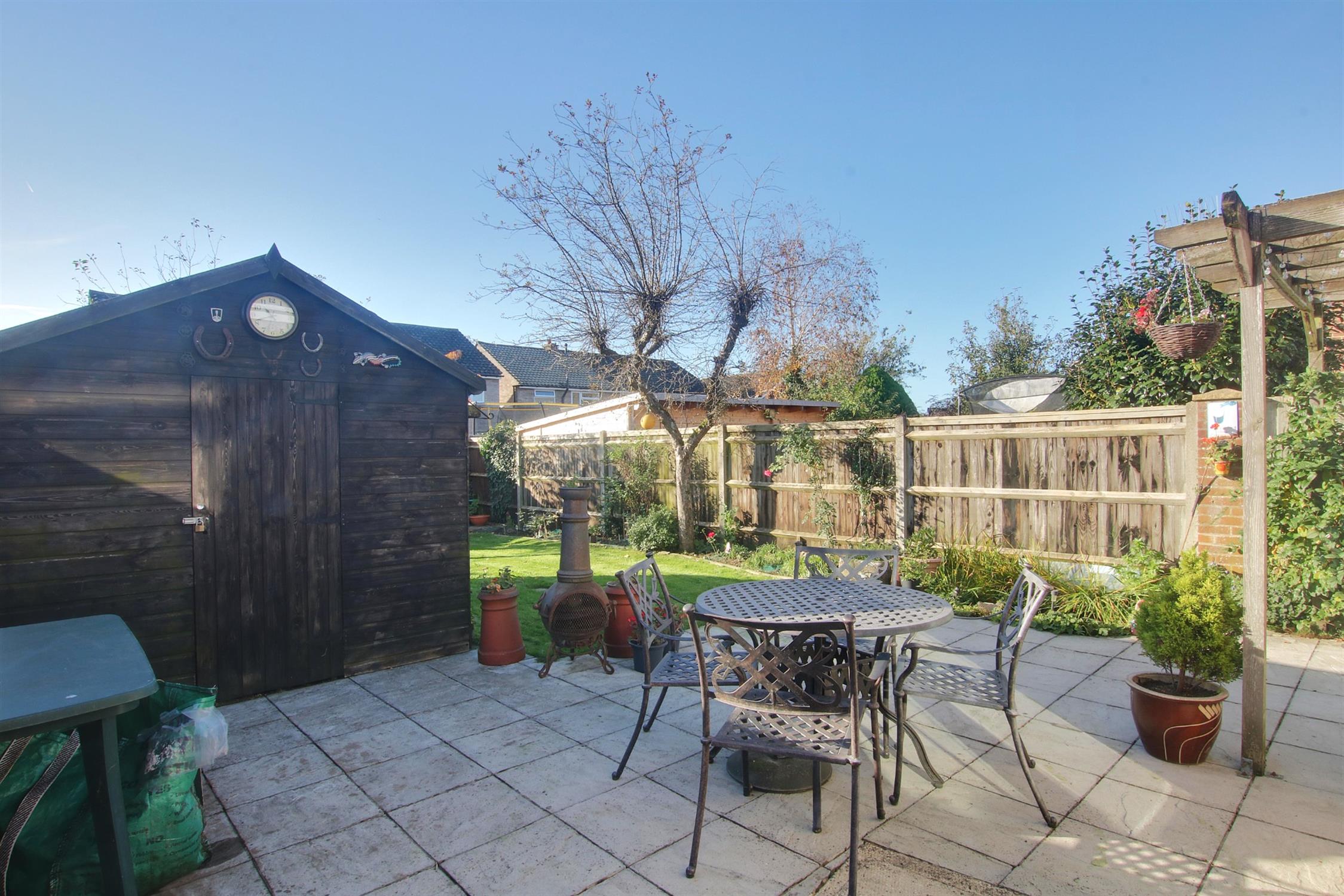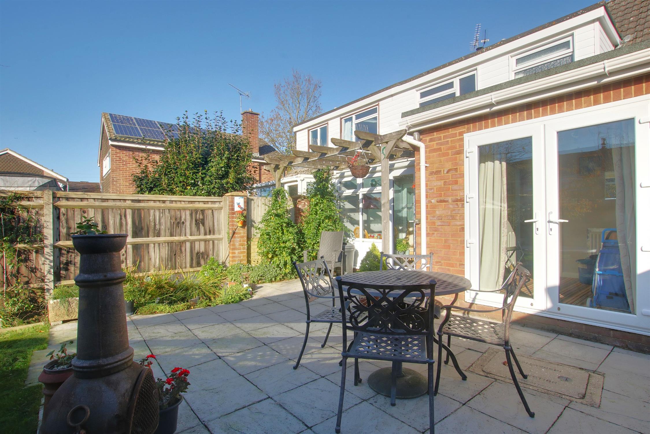 To the front of the property, a driveway provides off-road parking for two to three vehicles, leading to a garage with an up-and-over door, power, and light, as well as a personal door to the rear garden. Gated access opens to the generous and sunny rear garden, which enjoys a southerly aspect. The patio, adjacent to the family room and conservatory, creates an ideal space for al-fresco dining and socialising.