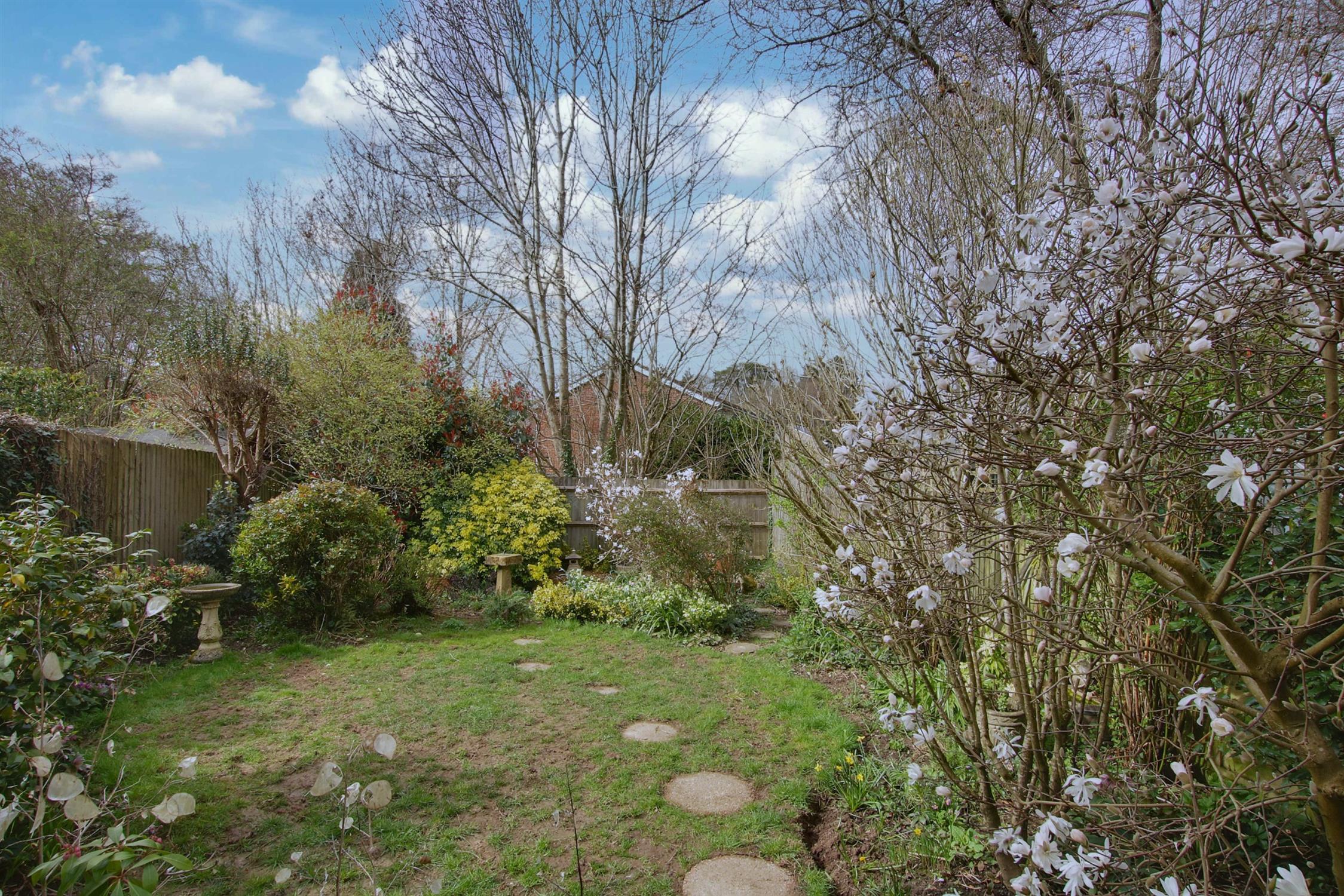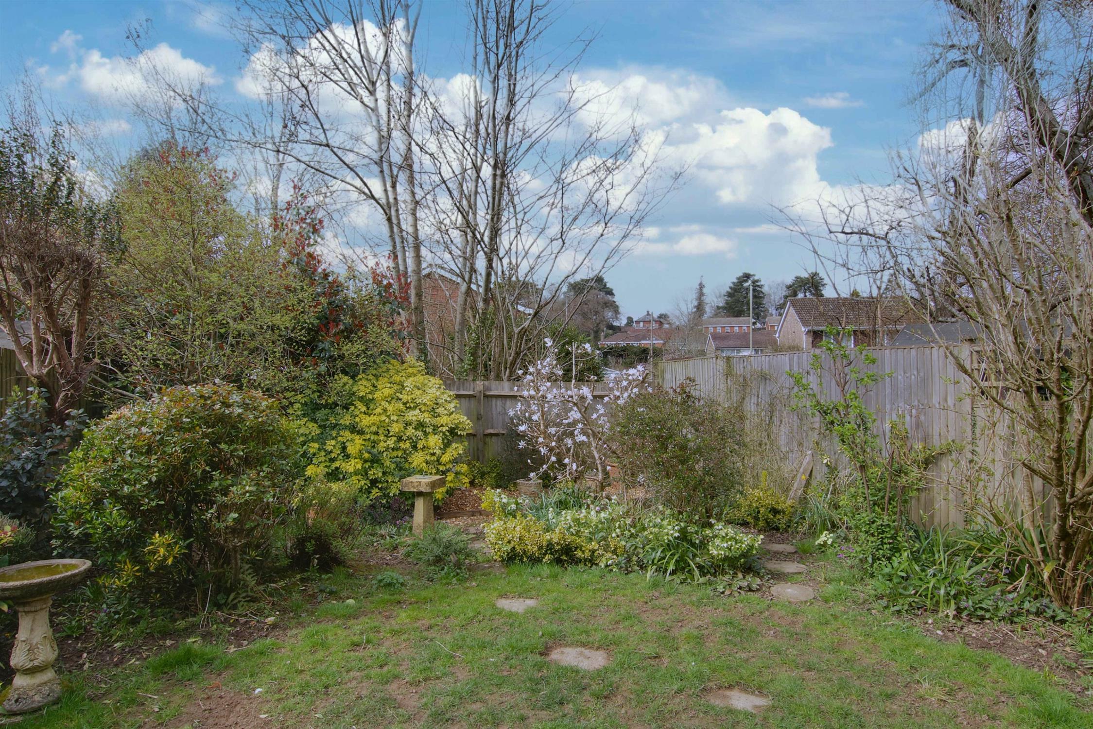 The westerly aspect rear garden provides a peaceful outdoor retreat, with a patio area perfect for seating and entertaining. The lawn is edged with attractive mature planting. To the side, the garage benefits from power and lighting, while the front garden is beautifully landscaped, featuring a footpath and driveway parking.