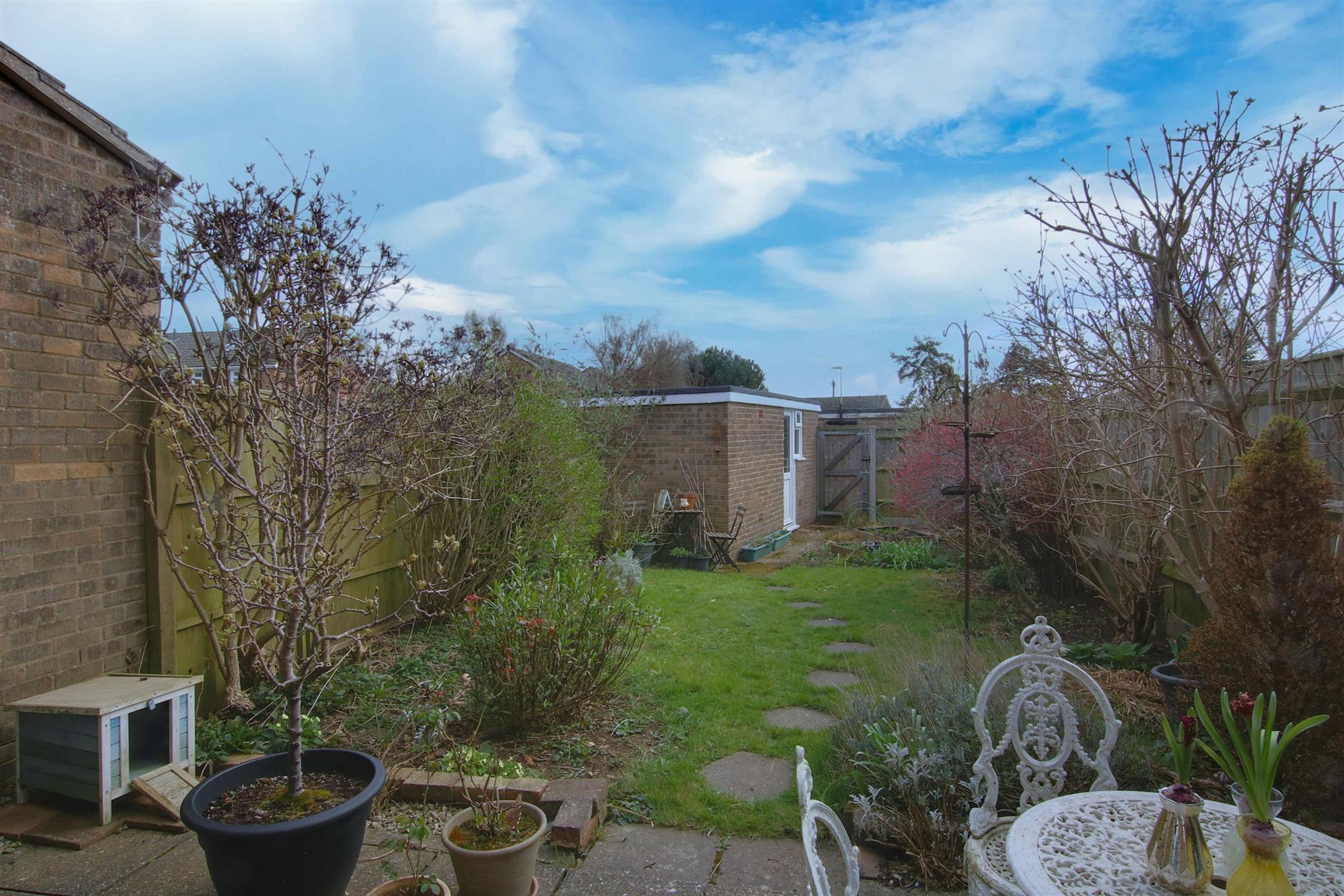 Open-plan front garden laid to lawn with a path to the front door. Rear garden enjoying a south-facing aspect and mainly laid to lawn with flower and shrub borders, paved patio, and gated rear access. The garage is conveniently situated at the end of the garden with a connecting UPVC door, power supply, up-and-over door, and an adjacent parking space.