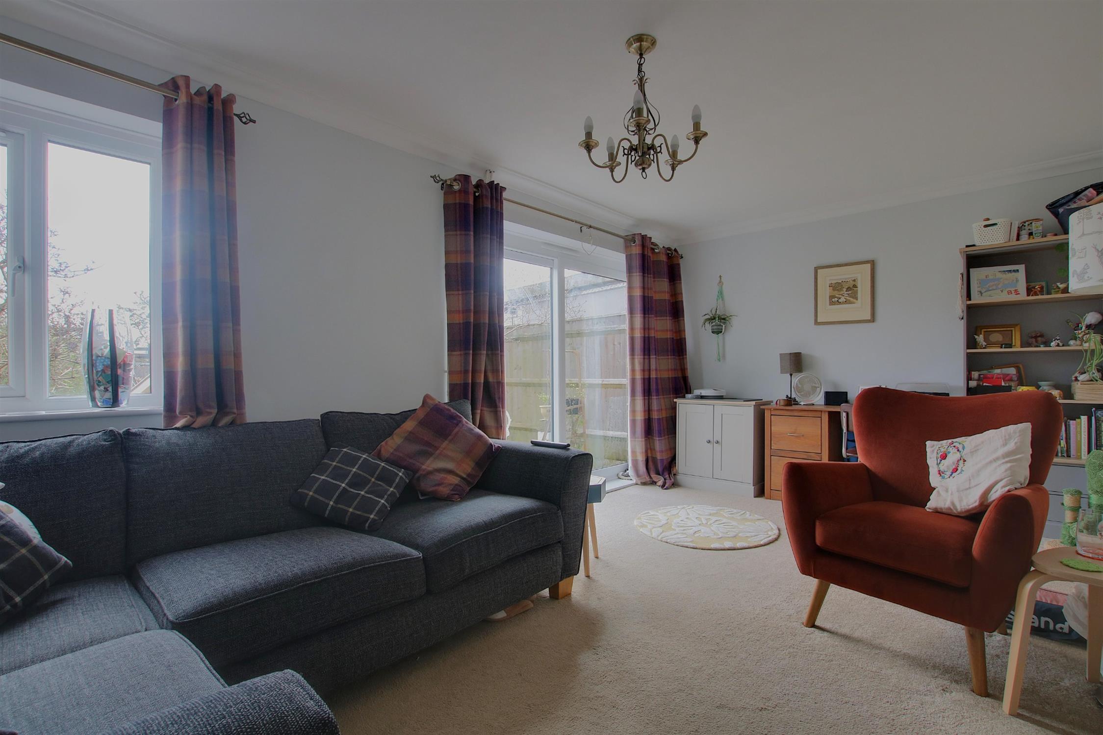 Radiator, double-glazed window and sliding doors opening onto the rear garden.