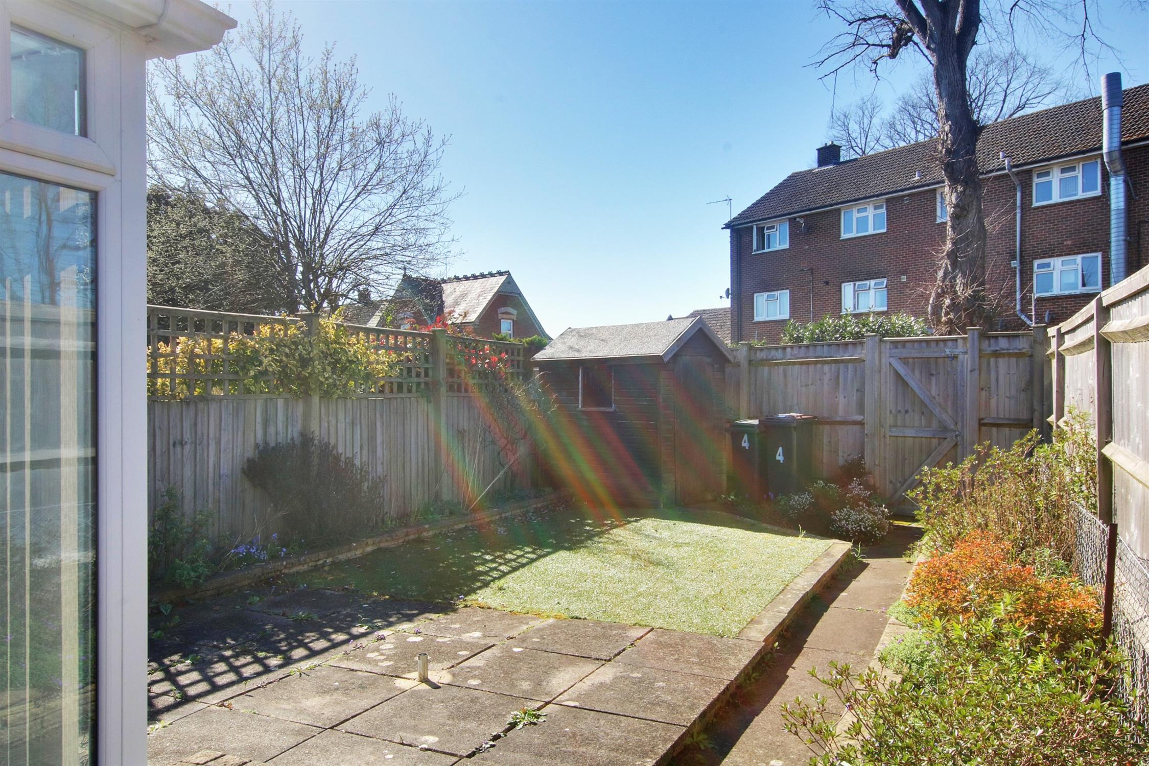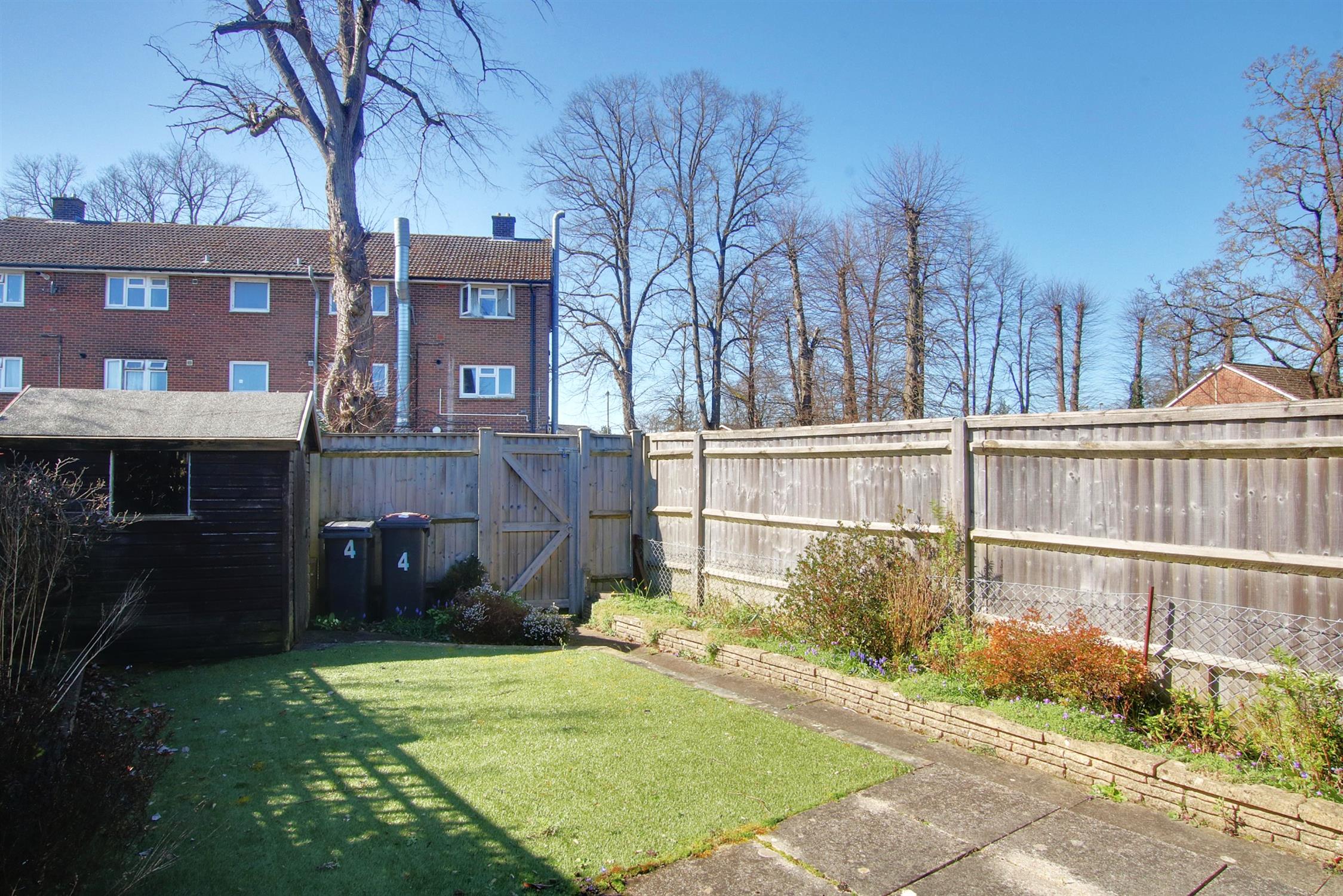 Neat garden to the front with shingled area planted with herbaceous plants and shrubs, and tarmac driveway providing off-road parking for at least two cars. Pleasant garden to the rear enjoying a sunny southwest facing aspect, enclosed by close board fencing with paved patio, area laid with artificial turf for low-maintenance, flower and shrub borders, garden shed, and path providing rear access.