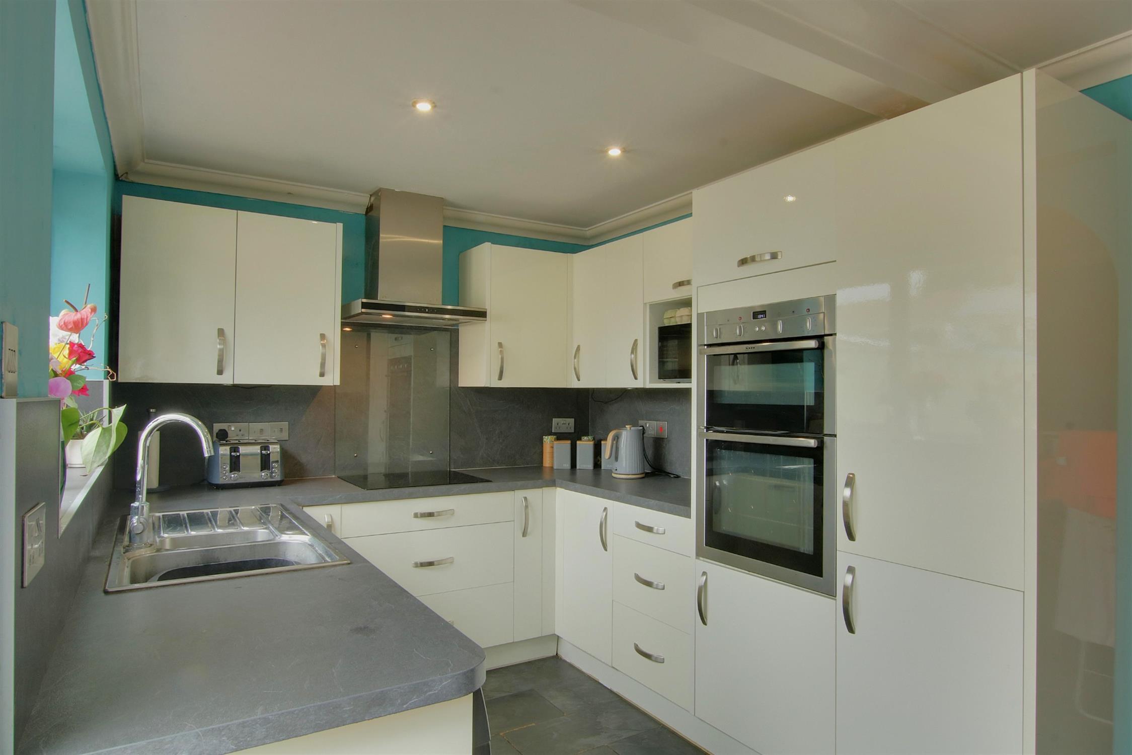 Well fitted with an attractive range of modern wall and base units with work surfaces over and complementary surrounds, inset induction hob with glass splashback and stainless steel extractor hood above, built-in electric double oven, space for fridge/freezer and washing machine (the fridge/freezer is avai
