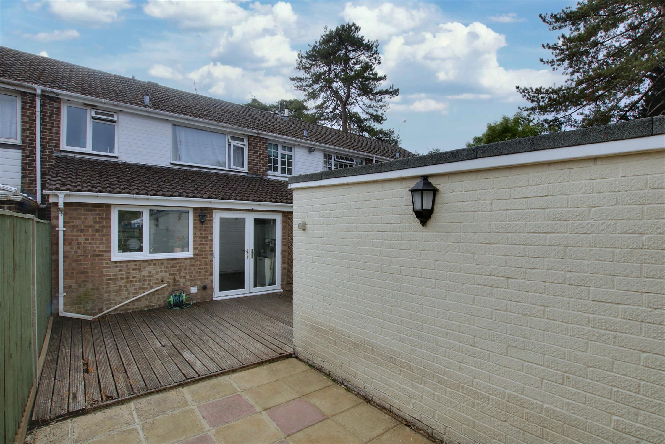 Neat garden to the front with some shrubs and trees enclosed by low-level panel fence. Rear garden mainly laid with decking and paving ideal for barbecues and al-fresco dining, useful outside tap, and with gated rear access. The garage adjoins the rear garden for convenient access and has a remote-control roller door and an adjacent parking space.