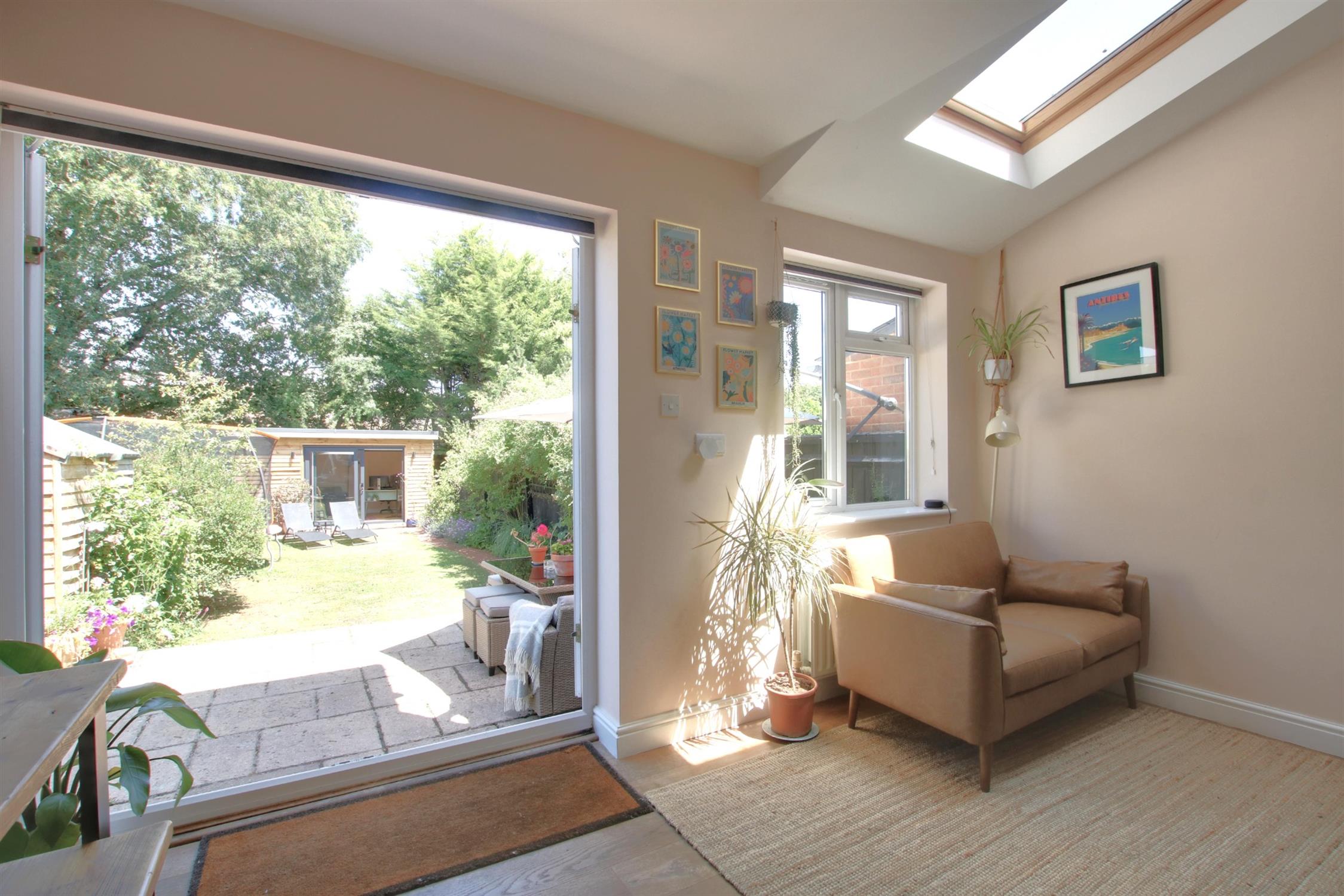 The property boasts a good-sized, sunny rear garden that offers a pleasant and private retreat, perfect for alfresco dining, gardening, or relaxing with family and friends. A solidly constructed garden entertaining room/home office adds further versatility to the property and could even be used to accommodate overnight guests. It benefits from hard-wired Wi-Fi, making it ideal for those working from home or seeking additional living space. To the front, the property also offers the convenience of driveway parking.