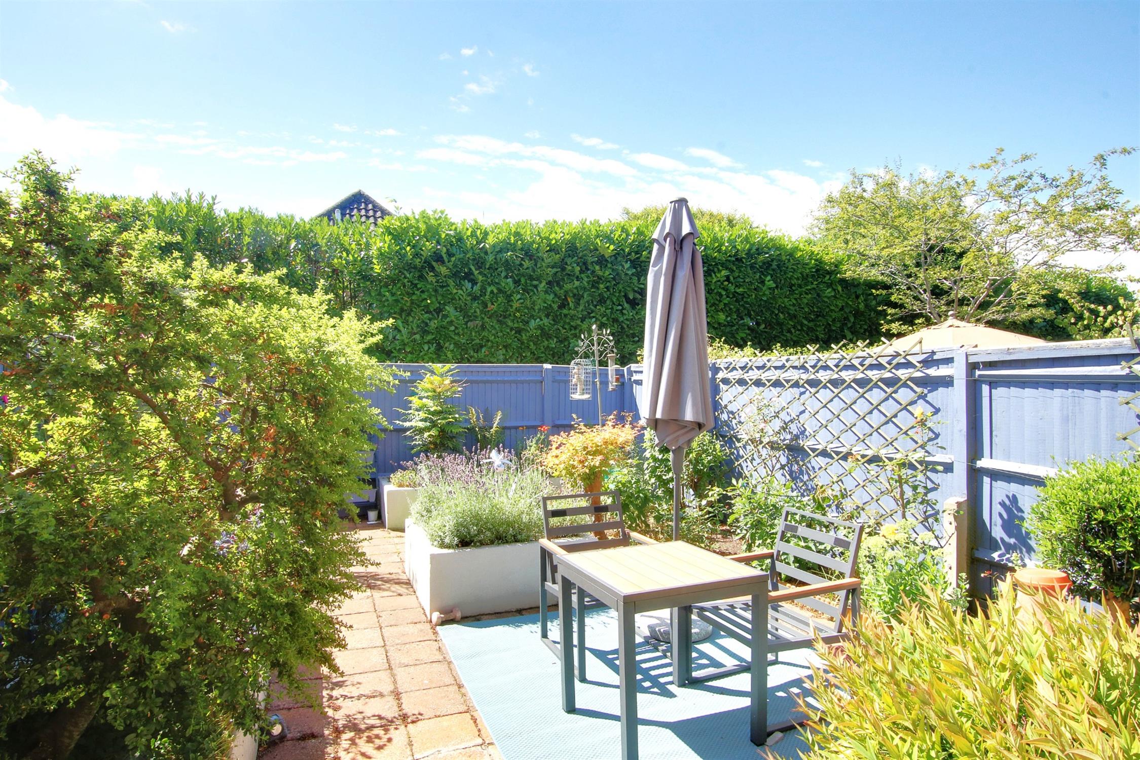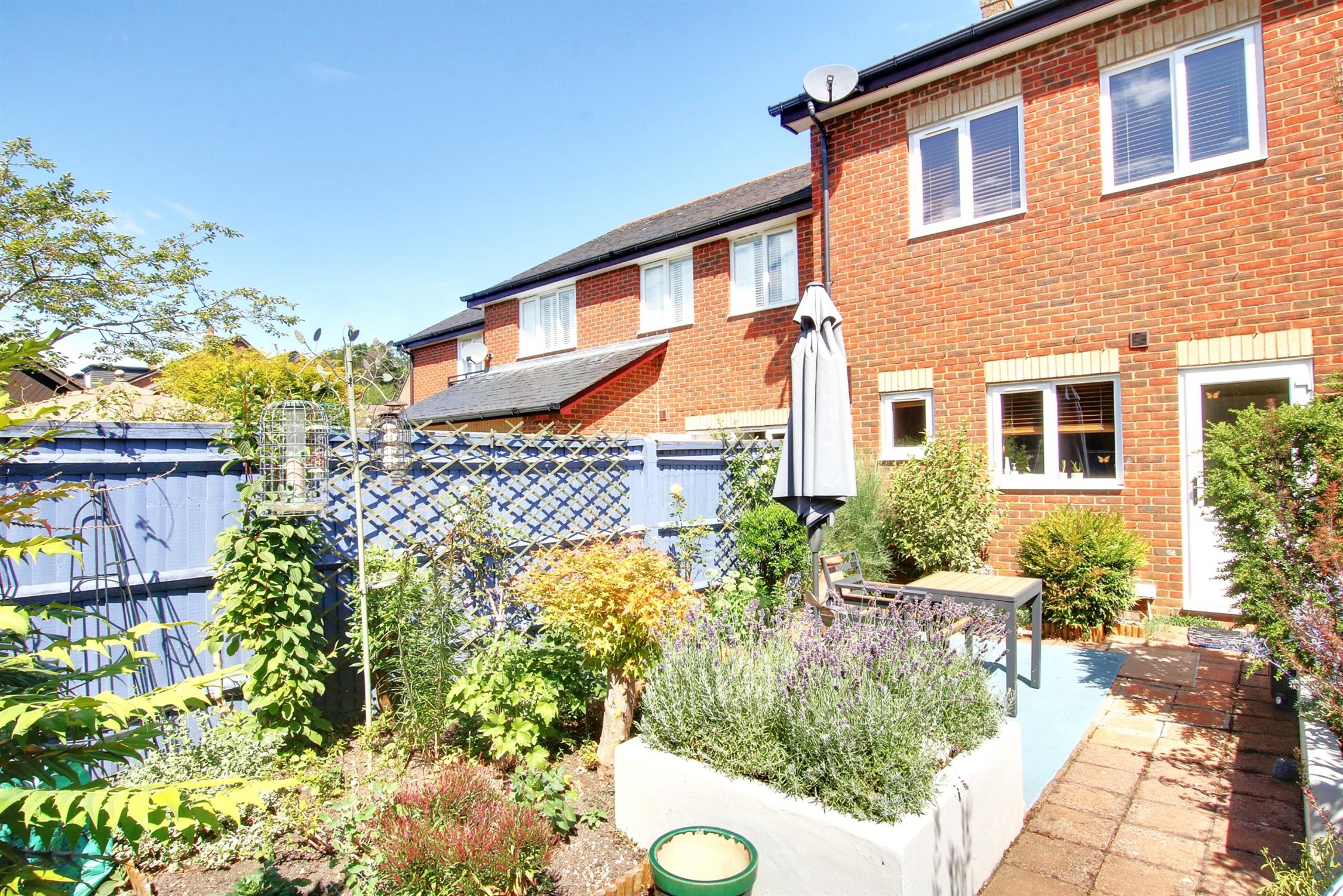 The south-facing rear garden has been beautifully landscaped with paved seating areas, perfect for entertaining or quiet relaxation. Flower beds filled with a variety of shrubs add colour and interest throughout the seasons. The garden is fully enclosed with fencing and has a gate providing pedestrian access to the car barn, which offers private parking and a secure, lockable store. Additional visitors’ parking spaces are also available.