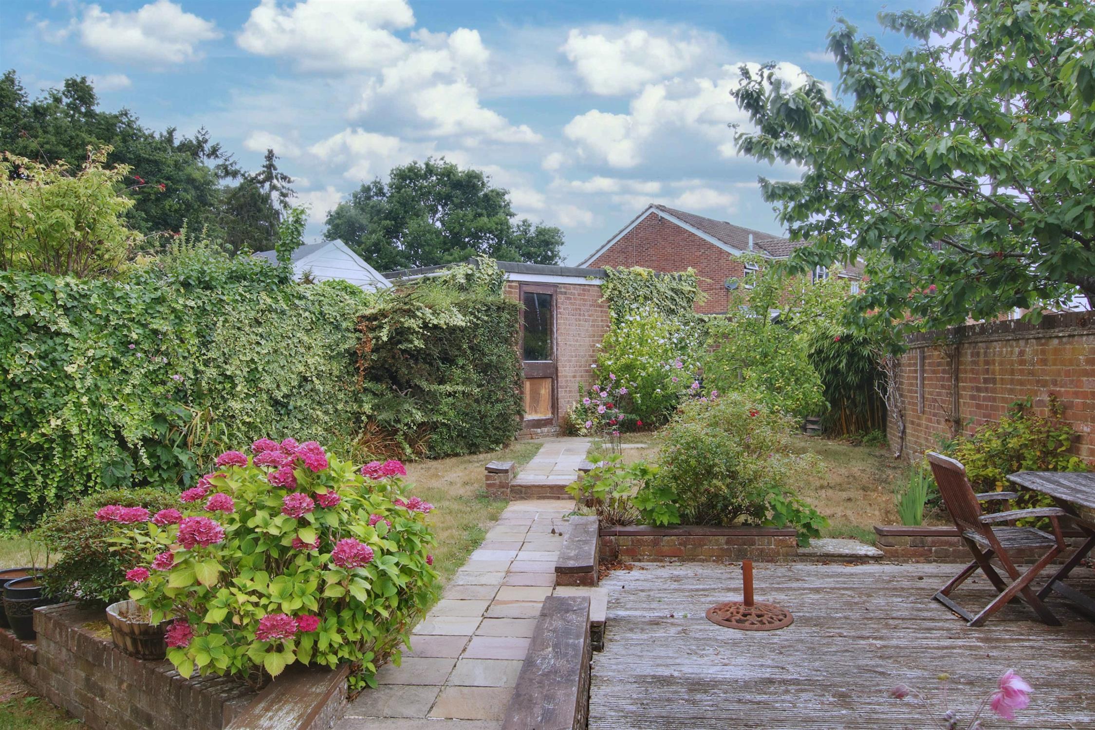 Set on a corner plot with a large front garden laid to lawn enclosed by low-level hedge, block paved drive with off-road parking for at least two cars. The good sized rear garden is mainly laid to lawn with a paved patio and separate decking area for barbecues etc, garden shed, fruit tree, and a colourful variety of mature plants and shrubs. A path gives access to the garage at the rear which has a personal door to the garden, up-and-over door, power and light.