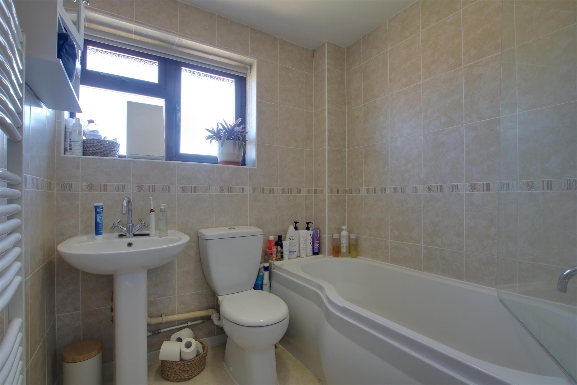First Floor:The landing connects to all three bedrooms, the family bathroom, and a useful airing cupboard. Bedrooms one and two are generously sized doubles, while bedroom three is a comfortable single, ideal for use as a nursery, guest room, or home office. The family bathroom is finished with floor-to-ceiling tiling and includes a shower over the bath, WC, wash basin, and a heated towel rail.