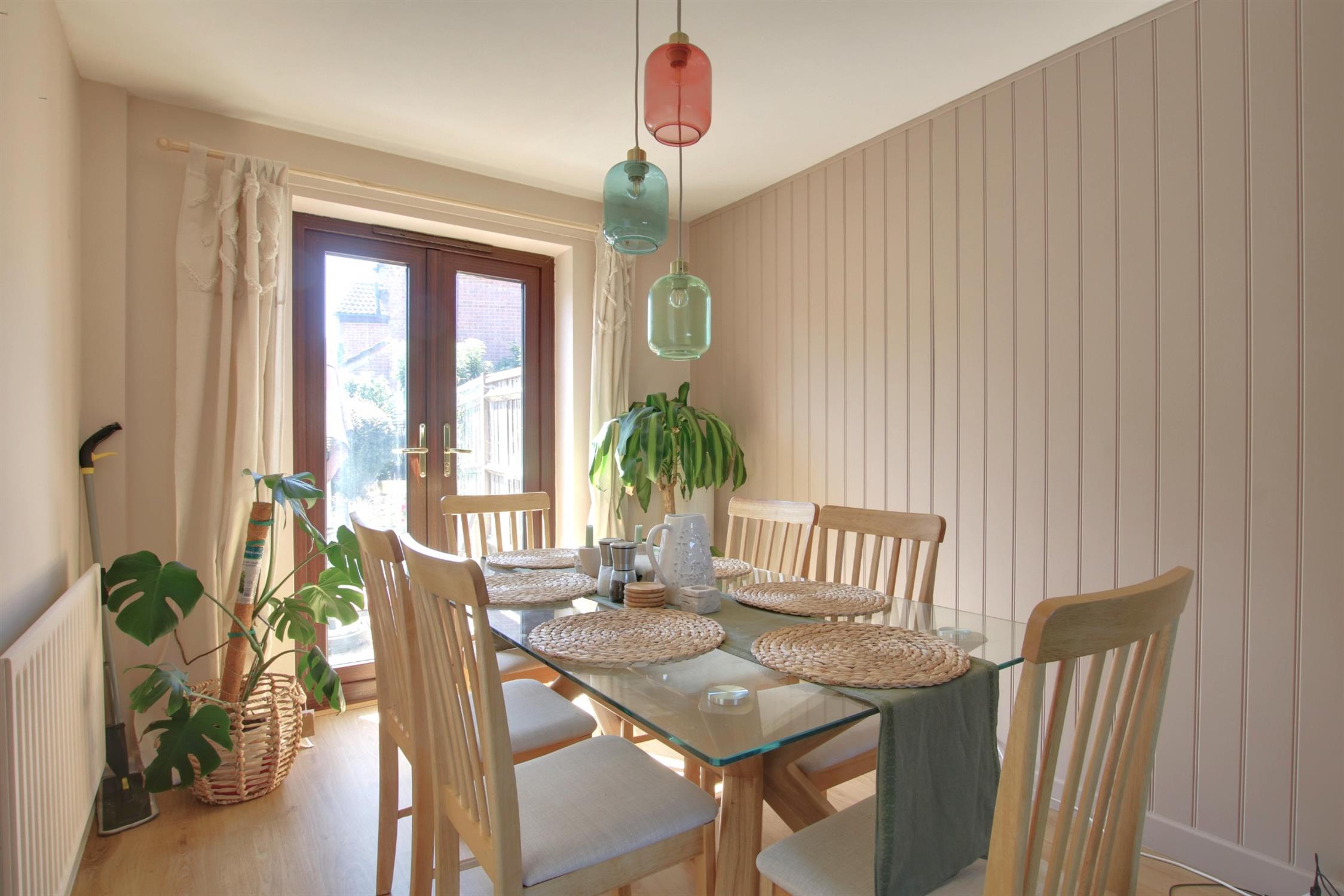 Outside:The south-facing rear garden is a standout feature, accessible through double doors from the sitting/dining area. It offers a spacious patio perfect for outdoor seating or entertaining, alongside a well-kept lawn and established shrubs. A side door also connects the garden to the garage. The property benefits from driveway parking and a garage with an up-and-over door. The garage is equipped with power and lighting, providing excellent storage or potential for a workshop or hobby space.