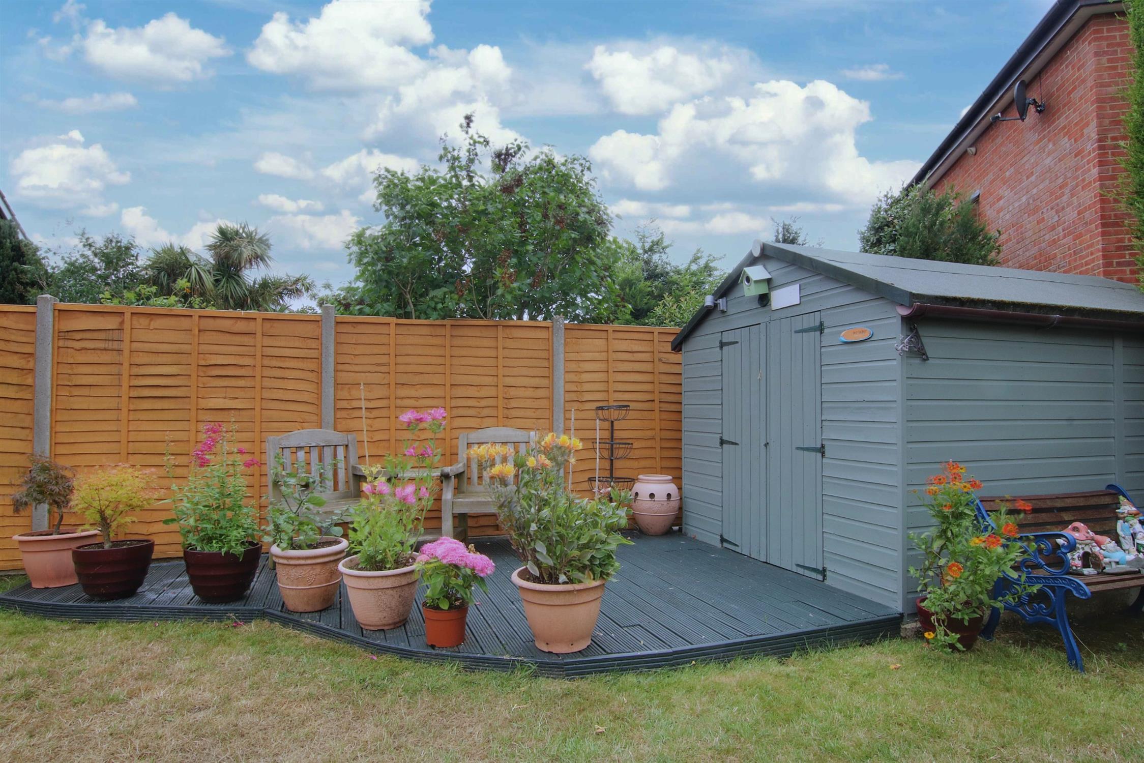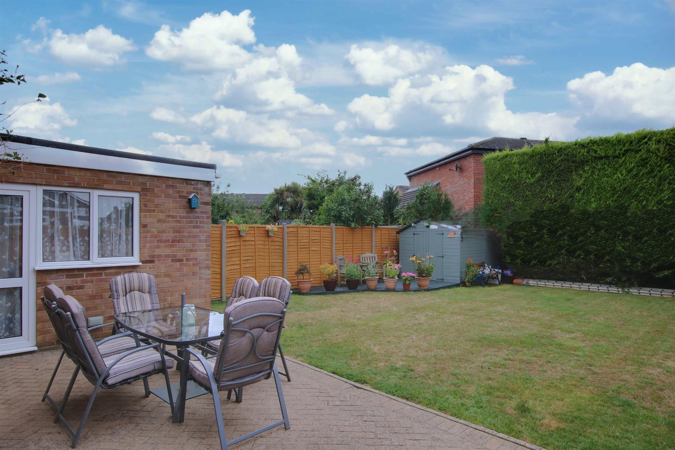 To the front, is off-road parking for two vehicles leading to the attached garage which has an up-and-over door, power and light. There is an open-plan area of garden laid to lawn and gated access at the side to the rear garden which enjoys a west-facing aspect and a high degree of privacy and seclusion. There is a large brick-paved terrace ideal for barbecues and al-fresco dining, and a larger area laid to lawn enclosed by panel fencing and a conifer screen across the rear boundary. The garden shed has power connected and an adjoining patio decking area.