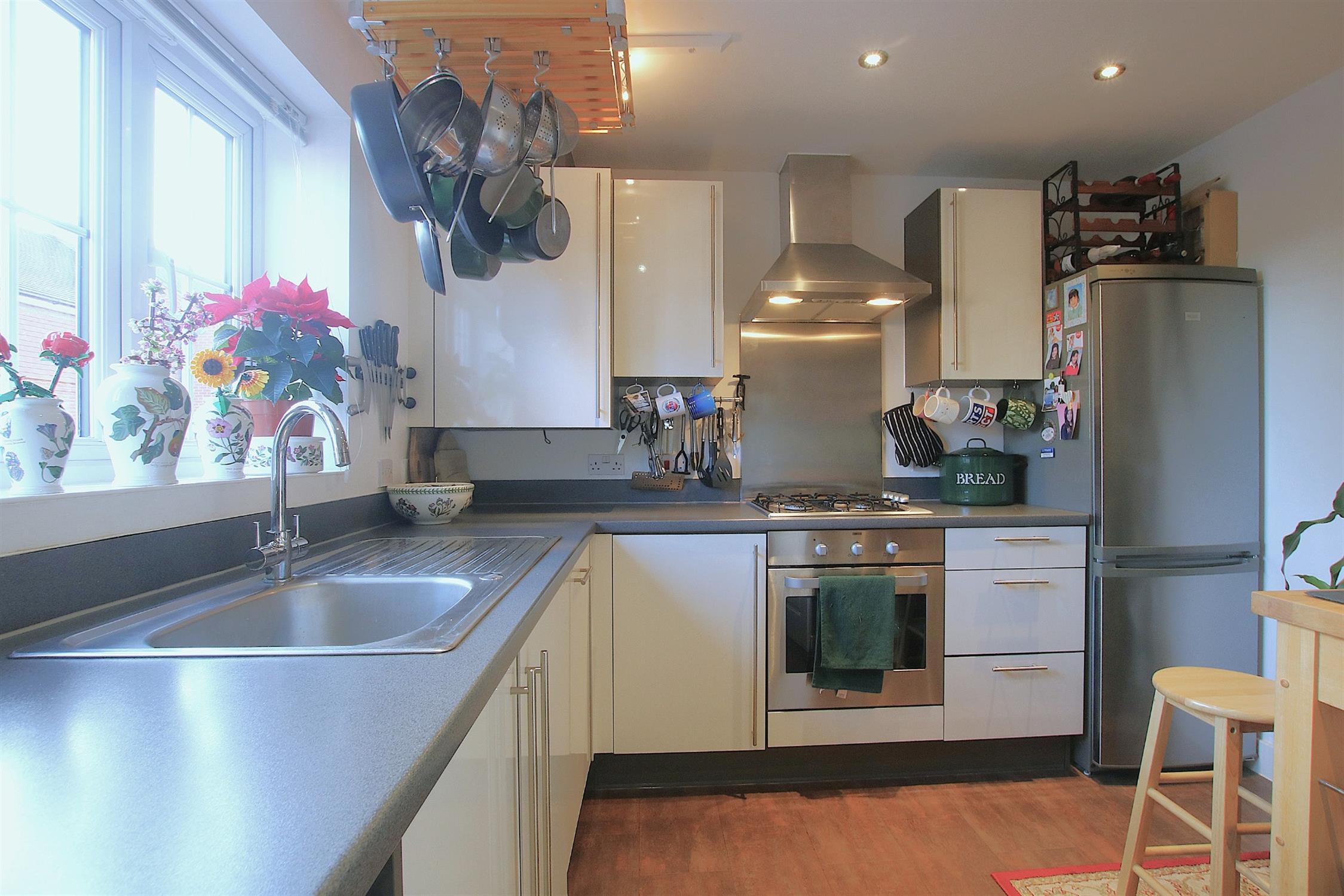 The property has been beautifully maintained and thoughtfully designed to provide bright, contemporary living spaces ideally suited to modern lifestyles. Upon entering, a welcoming hallway leads to a stylish kitchen/breakfast room, perfect for everyday dining, alongside a convenient downstairs cloakroom. The heart of the home is the impressive lounge/dining room, a generously proportioned and light-filled space enhanced by French patio doors that open directly onto the rear garden, seamlessly blending indoor and outdoor living.