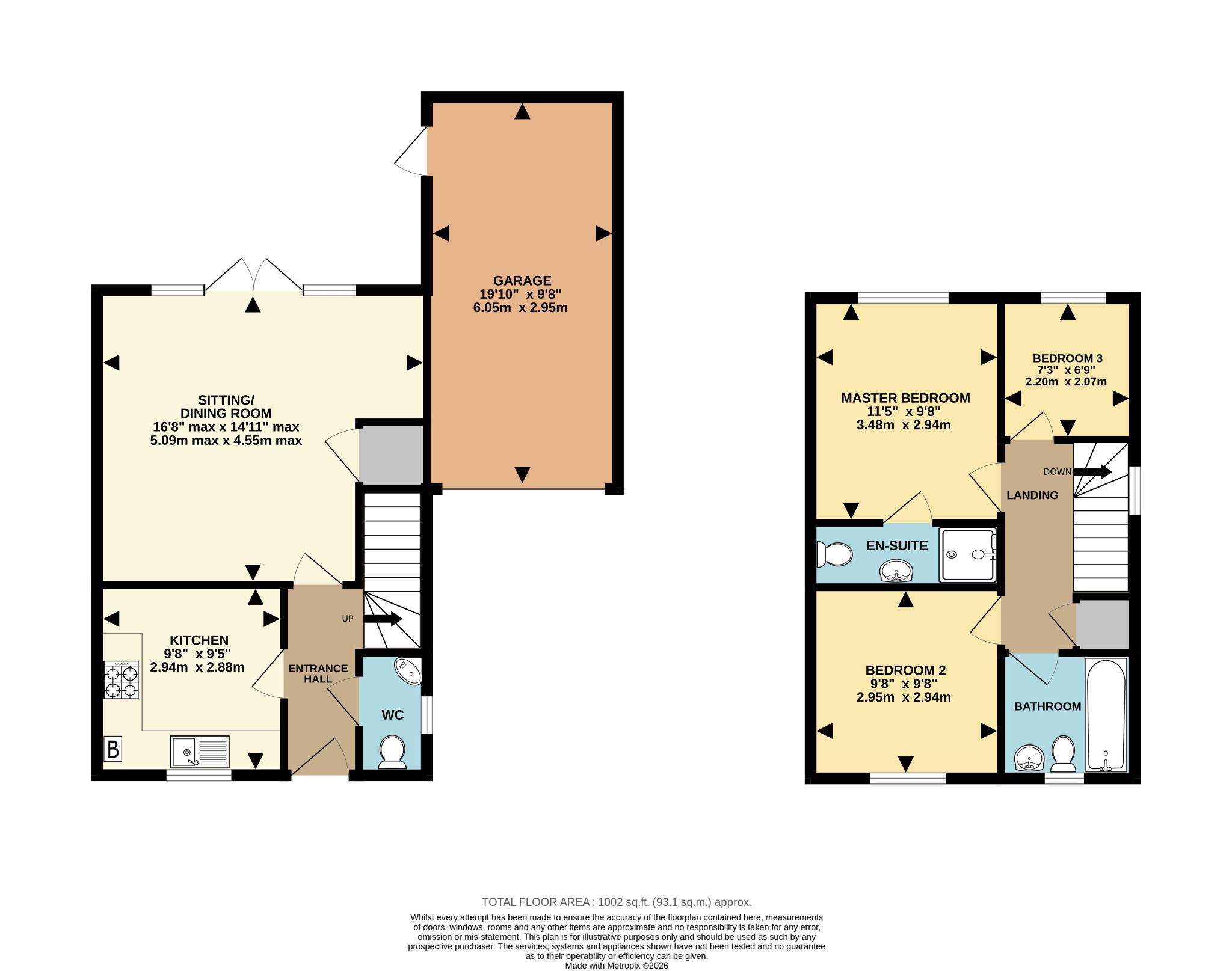 The first floor offers three well-appointed bedrooms, comprising two comfortable doubles and a generous single bedroom, all served by a bright, modern family bathroom. The principal bedroom further benefits from a sleek en-suite shower room, adding an additional layer of comfort and privacy.