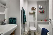 Fitted with a modern suite comprising hand basin, low-level WC, extractor fan, radiator.