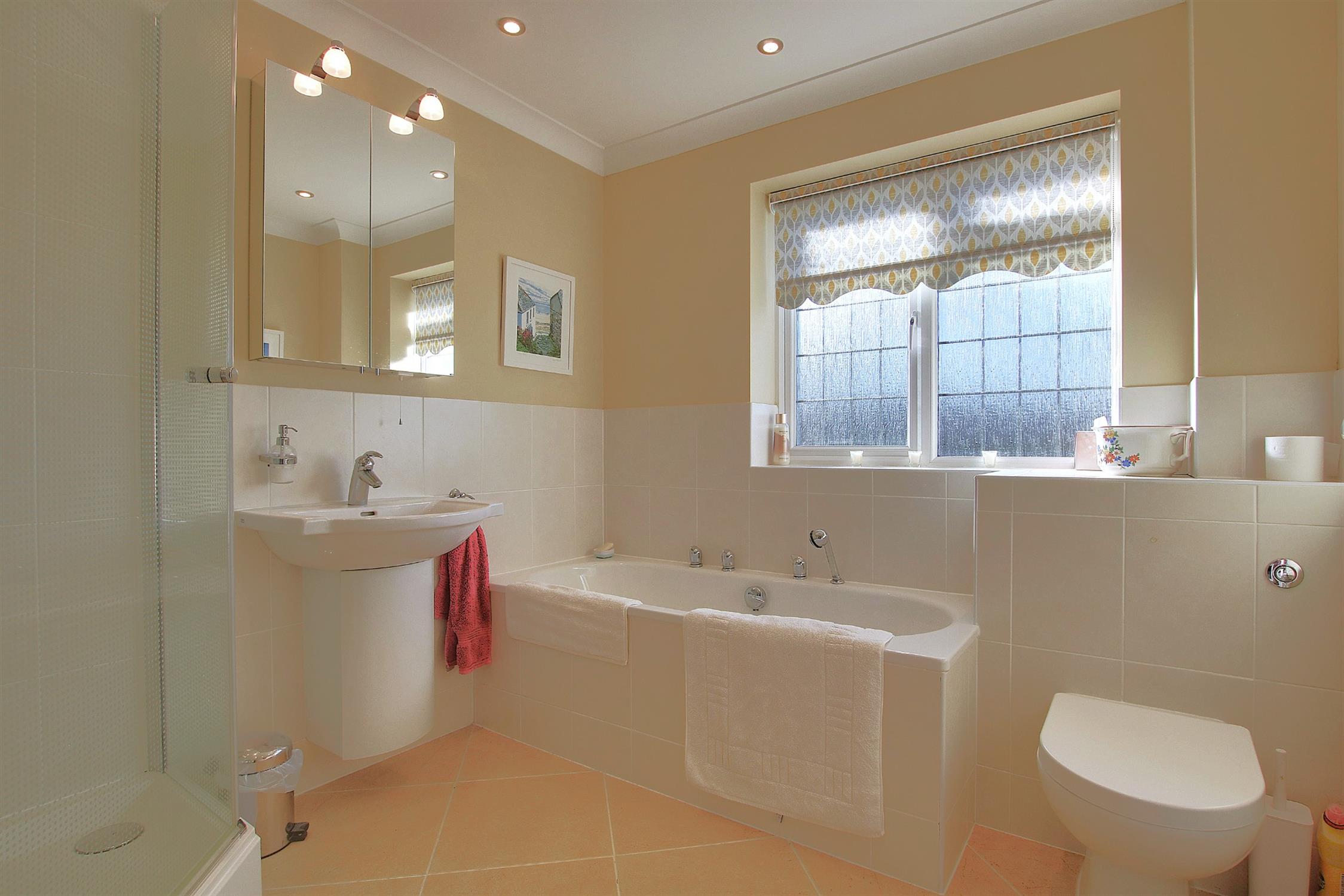 Upstairs, the home offers four well-proportioned bedrooms, all with built-in wardrobes, served by two bathrooms, providing flexibility for growing families, or visiting guests of those buyers looking to downsize into town whilst retaining a generous amount of living space.