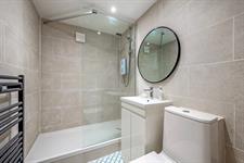 On the first floor is a split-level landing where the vendors have cleverly incorporated some original external features into their internal design. The master bedroom is a large double room which enjoys a double aspect, real wood flooring, and has a beautifully fitted en-suite with large walk-in shower, twin sinks atop a solid wood shelf, WC, heated towel rail, and complementary tiling. There are two additional double bedrooms and these share a stylishly appointed family bathroom fitted with a suite comprising bath, washstand, WC, and contemporary wall and floor tiling.
