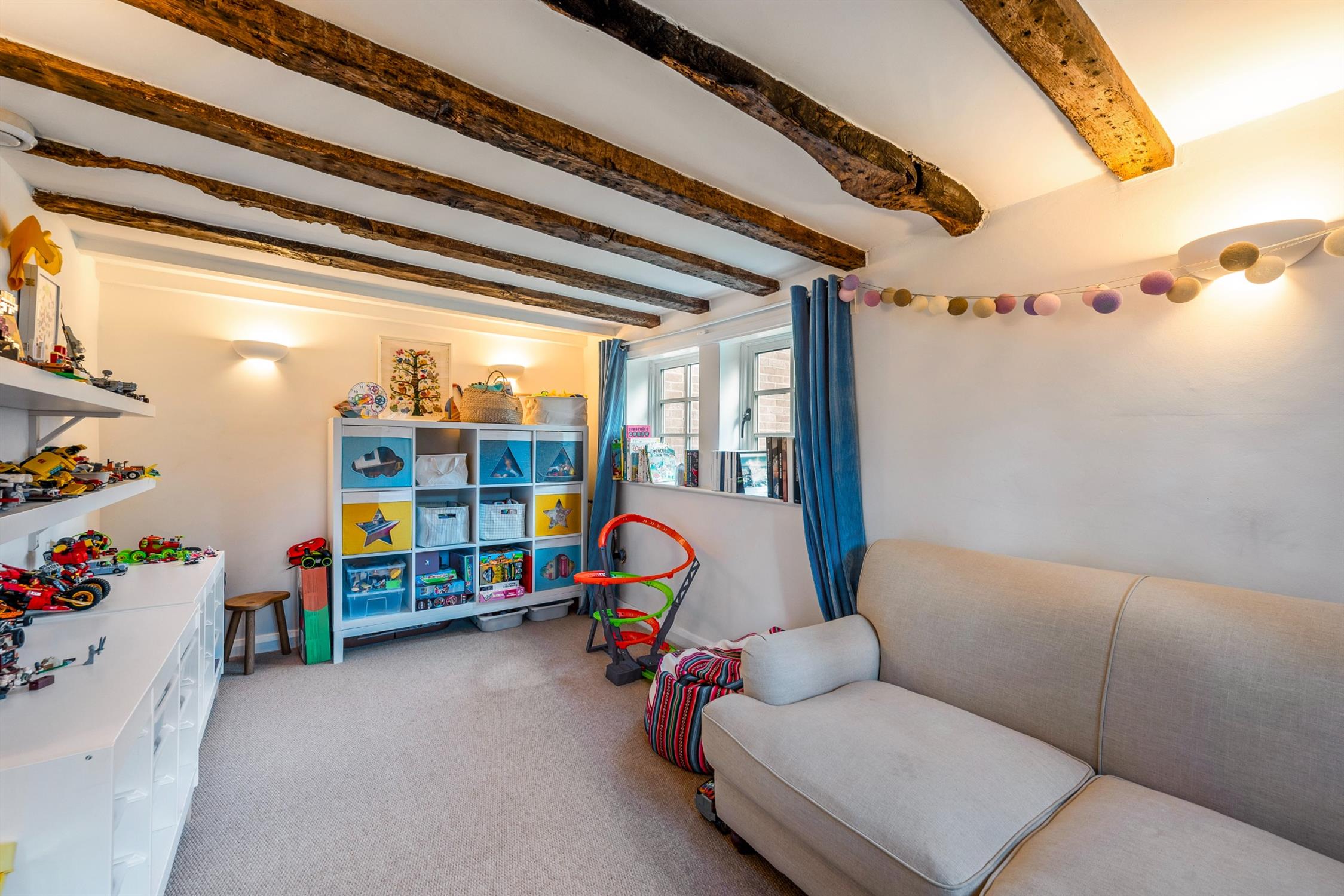 Back to the kitchen and a square arch opens into the sitting room which features a superb Inglenook fireplace with inset wood burner, the sitting room opening into the original front entrance hall and beyond which is a versatile room, currently used as a playroom but could also be a useful ground floor bedroom.
