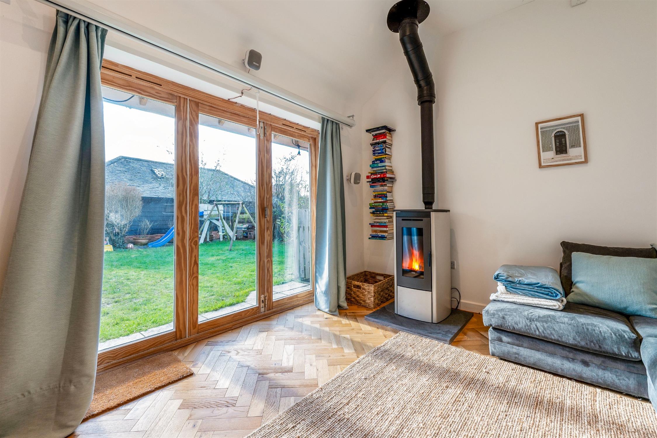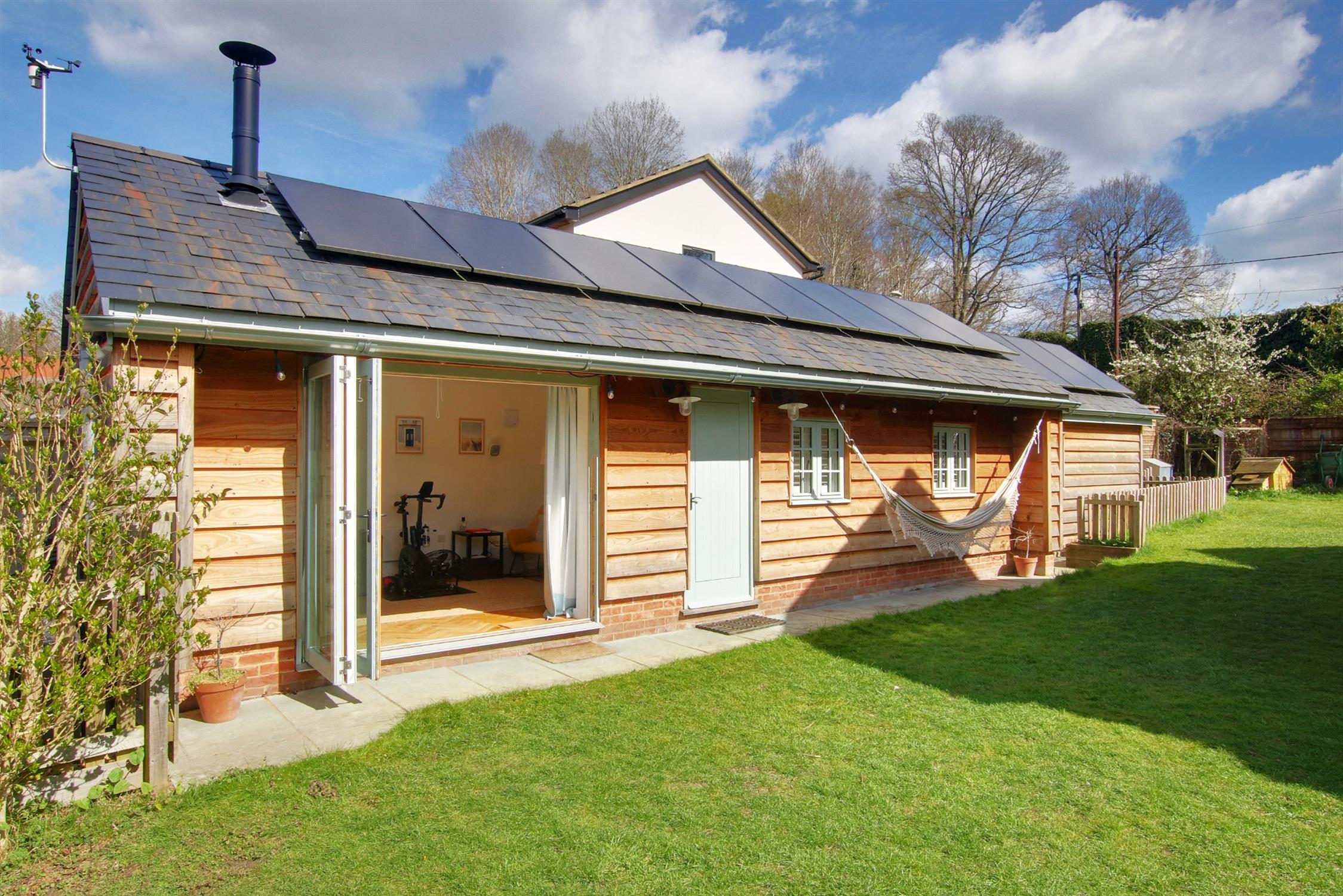 The annex is a fine addition to the property, sympathetically designed and finished to an exceptional standard for maximum energy efficiency in line with the main house, and perfect for use as ancillary accommodation to the main house, as a self-contained annex for dependent relatives, for homeworking, or simply for leisure purposes. There is a sitting room with bi-folding doors to the garden and space to add a kitchen area if required, yet another stylishly appointed shower room, a double bedroom, and a study which contains the inverter, controls and battery storage with spare capacity for the solar panels. There is separate access to an attached store at the end of the annex.