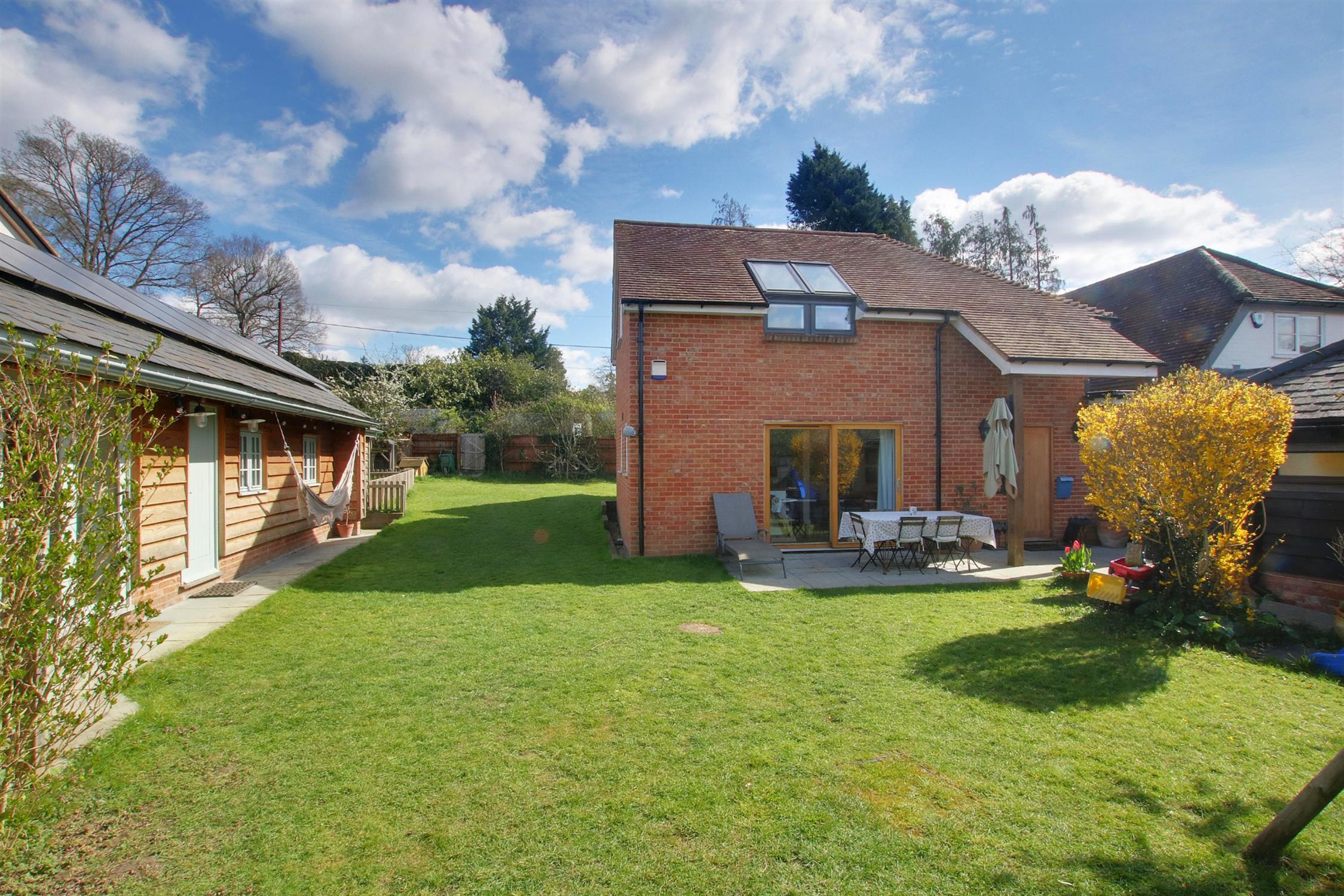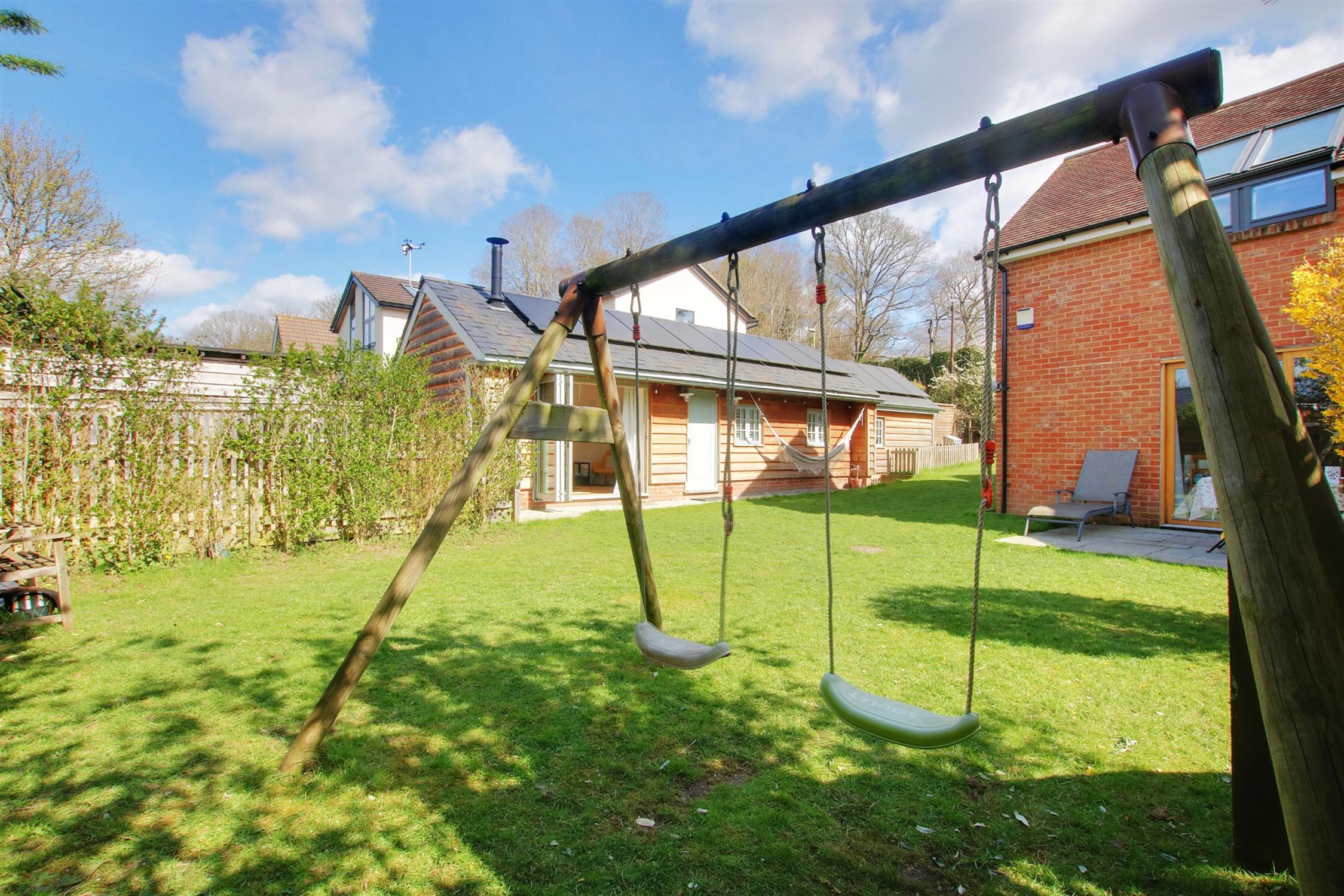 The property has gardens to the front side and rear which are principally laid to lawn with some flowers and shrubs, paved patio terrace for barbecues and al-fresco dining, and a safe play area for children all enclosed by fencing. There is access at the rear via Oxlease Meadows to the parking area behind and to the side of the garden with multiple car parking spaces.