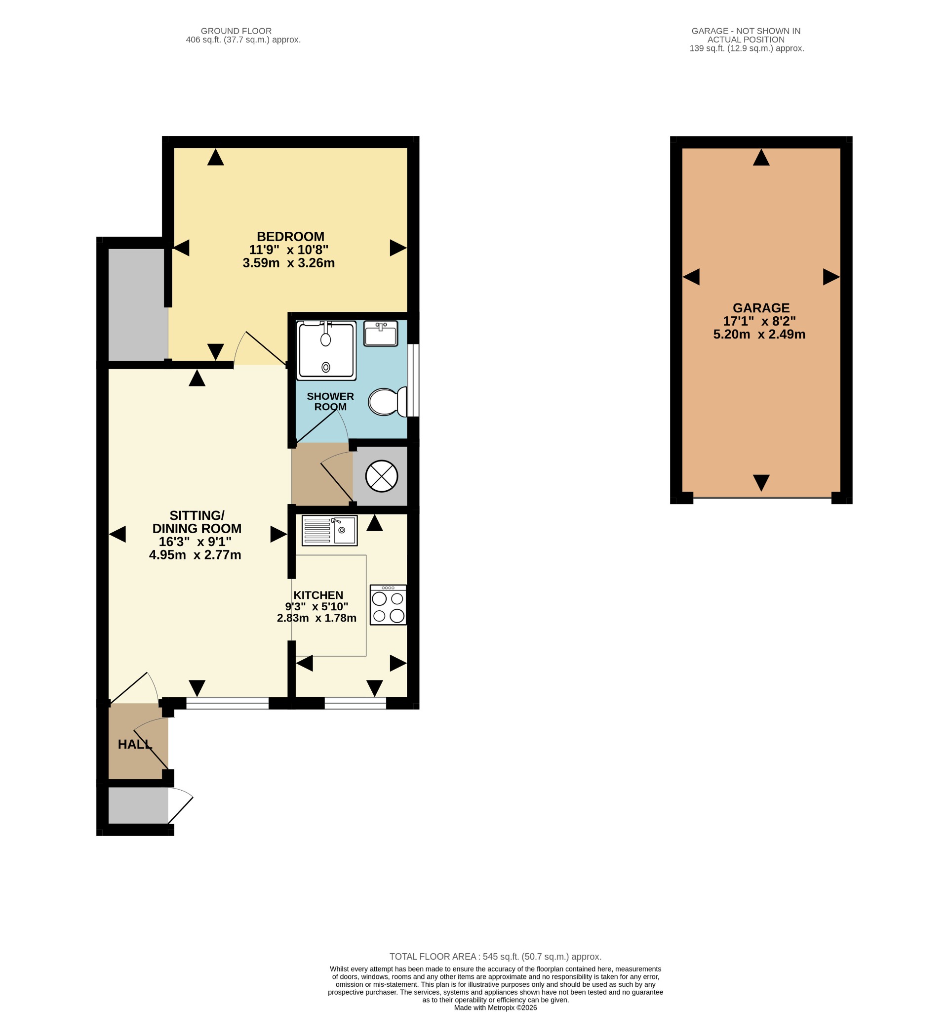 The property enjoys a small front garden area, providing a pleasant outdoor space and an attractive approach, as well as the advantage of a garage for parking or storage and an adjacent parking space.