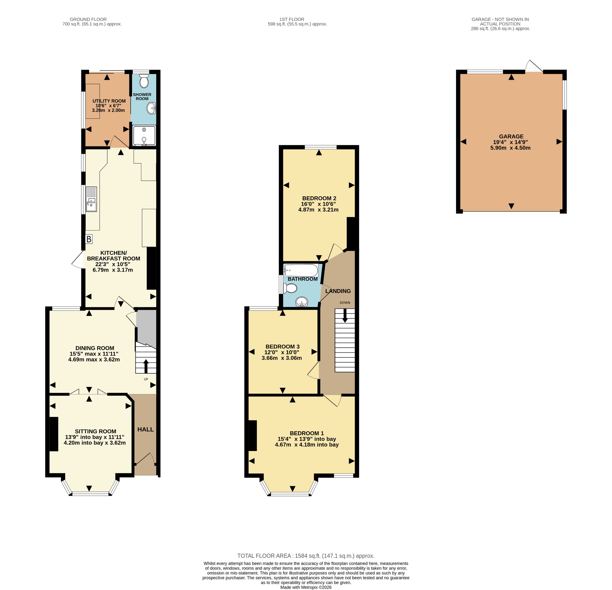 A charming entrance welcomes you into a traditional hallway, setting the tone for this attractive Victorian double-bay villa. Characterful proportions and period features immediately create a warm first impression, while the layout naturally guides you through the principal living spaces. Positioned at the front of the property, the elegant sitting room enjoys a beautiful bay window which floods the space with natural light. With generous proportions and classic period character, this is an ideal setting for relaxing or entertaining. Moving through double doors opening into the dining room, offering a wonderfully versatile reception space, well-proportioned it creates either two separate reception rooms or one lage open-plan living space. To the rear of the property lies the impressive open-plan kitchen/diner, stretching the width of the house, this sociable space benefits from a pleasant rear aspect and provides ample room for cooking, dining, and family life. With excellent potential for modernisation, it offers a fantastic opportunity to create a contemporary kitchen tailored to personal taste. Beyond the kitchen is a practical utility room providing additional storage and laundry space, together with a convenient ground-floor shower room. This arrangement is ideal for busy households or for those returning from outdoor activities.
