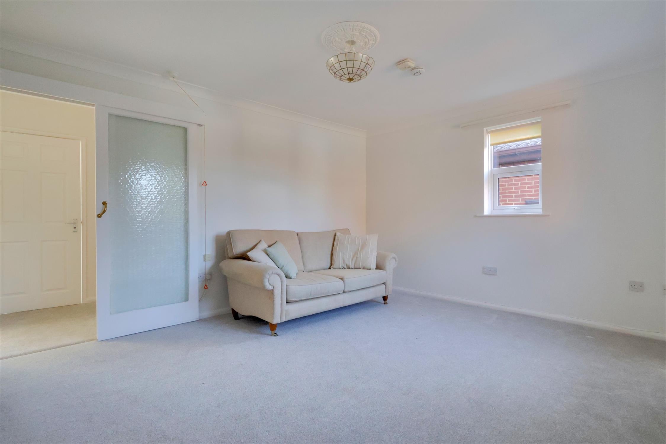 Coved ceiling, dual aspect upvc windows to front and side. Radiator with individual thermostat. Various electric points. Telephone and TV points. Glass sliding door to: