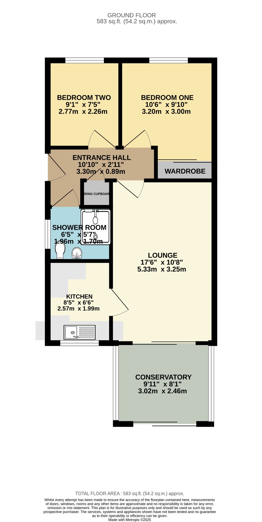 Brick construction, Polycarbonate roof with fitted sliding blinds,Upvc windows and patio doors leading to rear paved patio area and communal gardens. Lighting and power points.