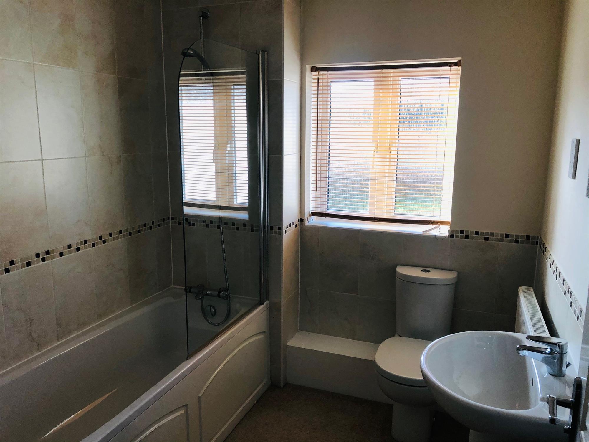 FAMILY BATHROOM: - Very smart and tidy three piece bathroom suite with shower off system over bath.