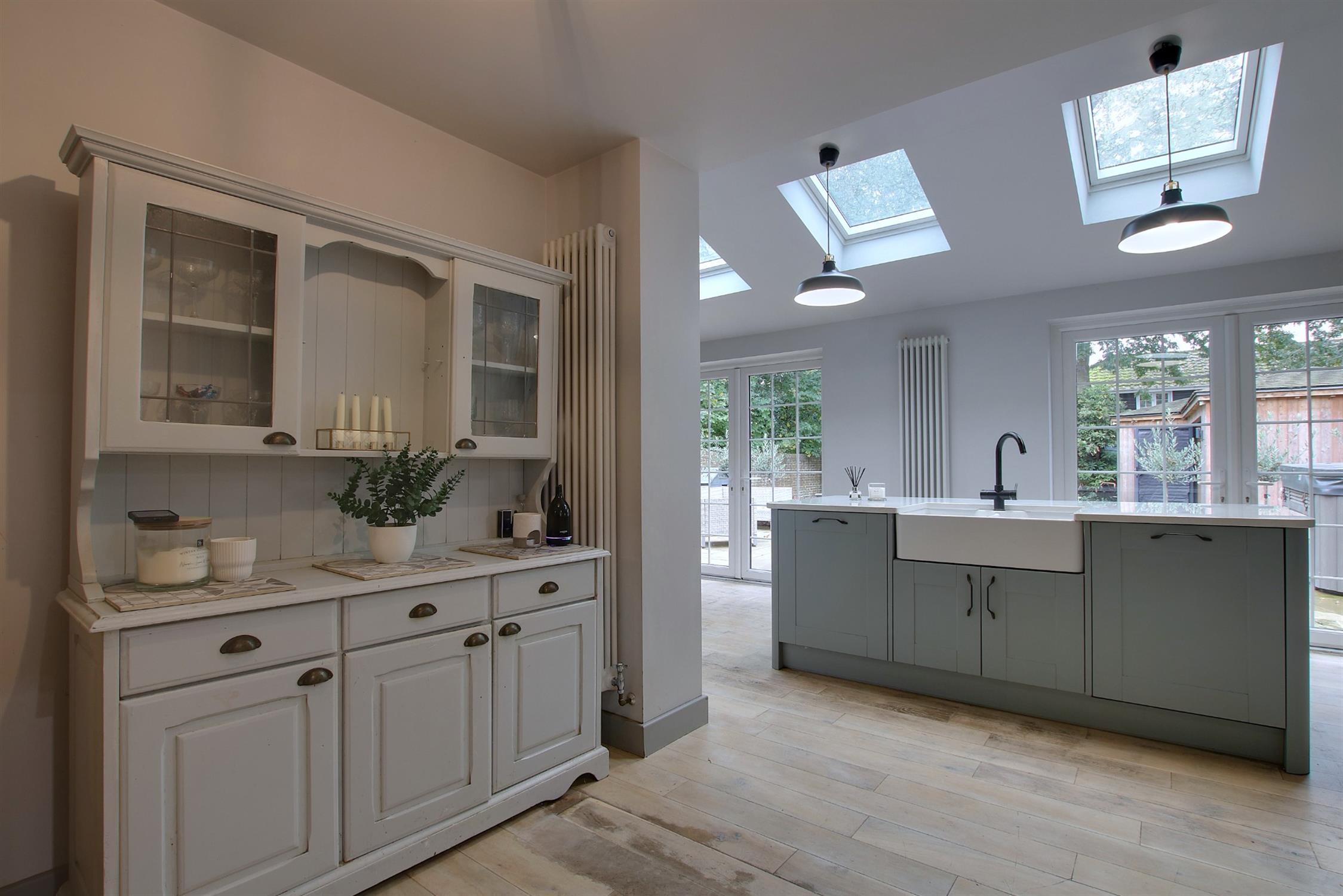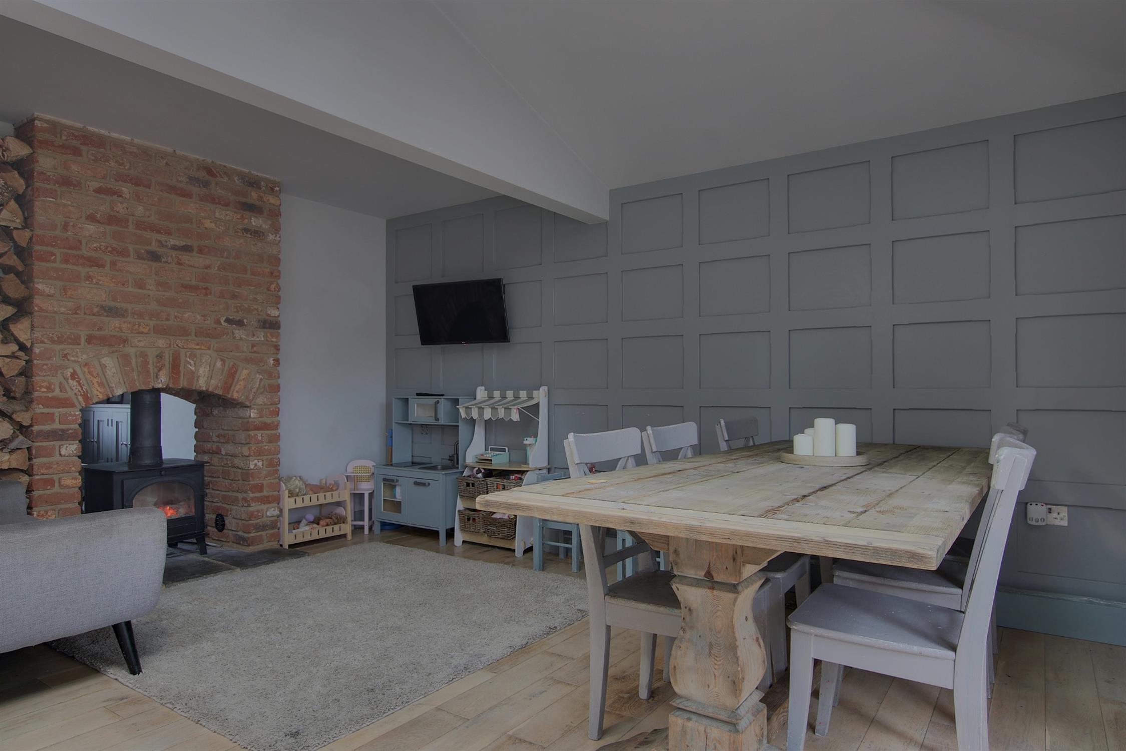 At the front, the spacious "Snug" sitting room beckons with its inviting atmosphere, enhanced by a shared log-burning stove that warms both this space and the family room at the rear. But the true gem of the home is the breathtaking open-plan kitchen, dining, and family area, which spans the entire width of the house - ideal for unforgettable entertaining moments. The stylish rear-facing kitchen, anchored by a striking granite-topped island, effortlessly flows into the dining and family spaces, where a cosy wood-burning stove serves as a captivating focal point.
