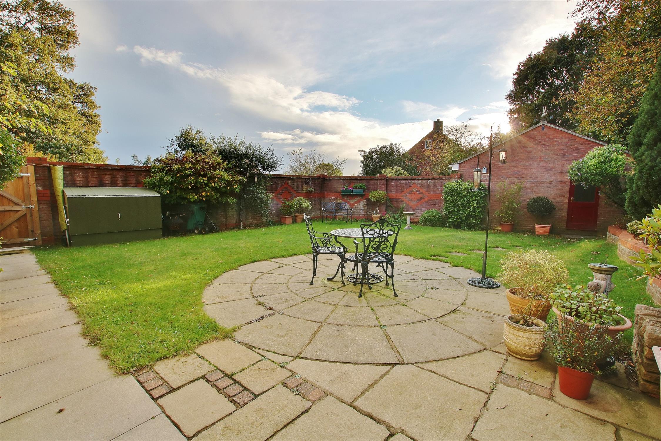 There is a lovely side garden to the house which is mostly laid to lawn with a circular paved patio area with raised beds, well stocked with mature plants. To the front of the house is lawned with flower beds.