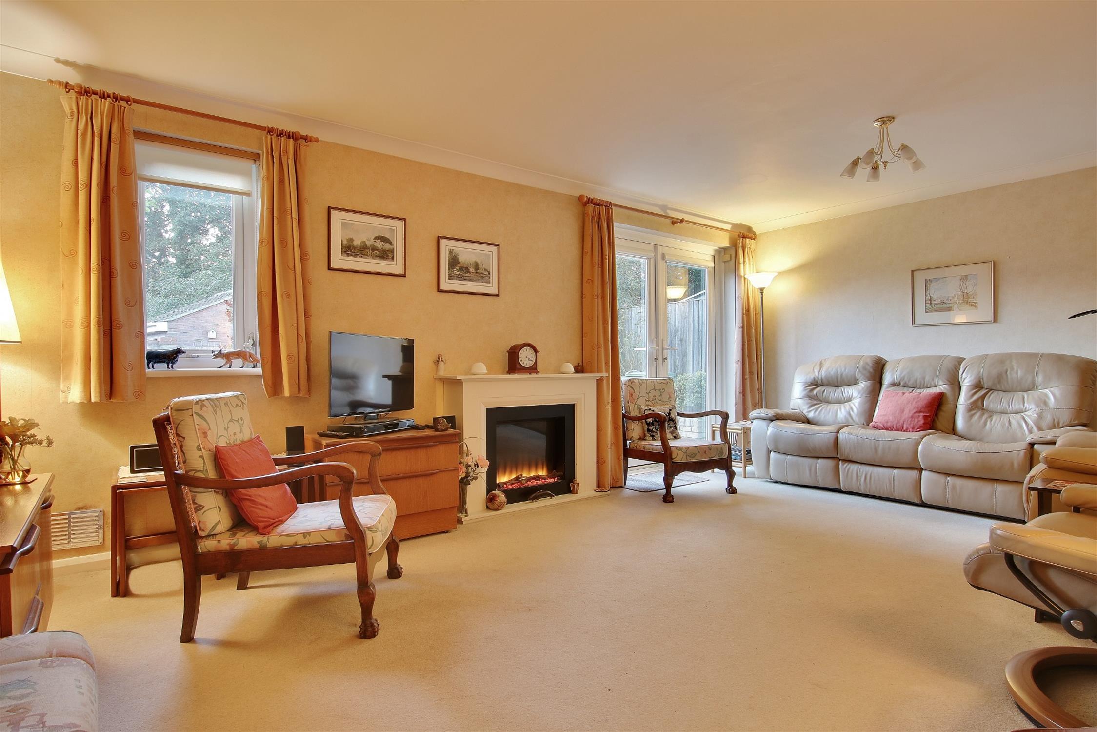 Double glass doors leading to garden, ceiling coving, two radiators (one with cover), wooden mantlepiece with flame effect electric fire.