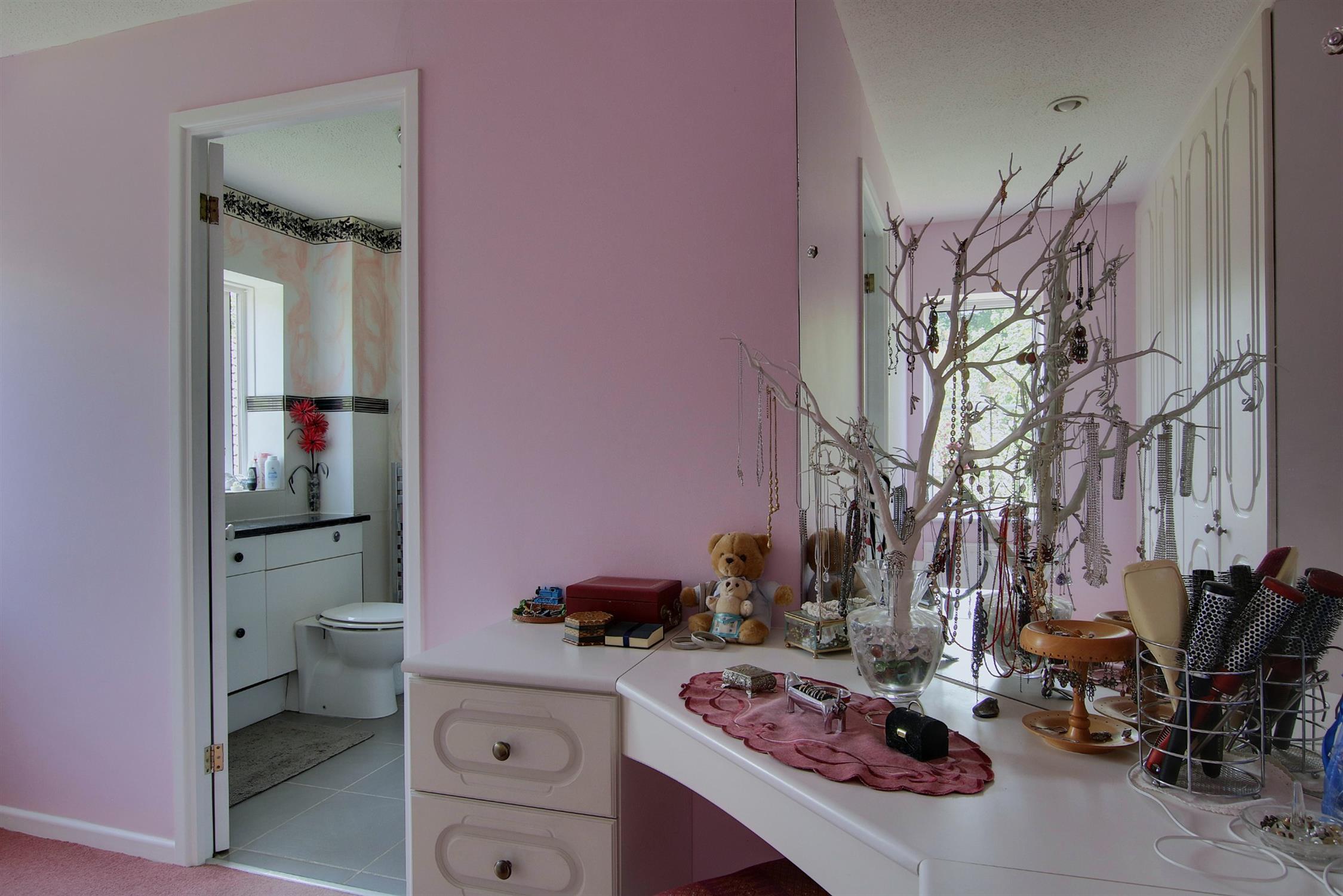 Range of fitted wardrobes and matching dressing table, double-glazed window to the rear, door to: