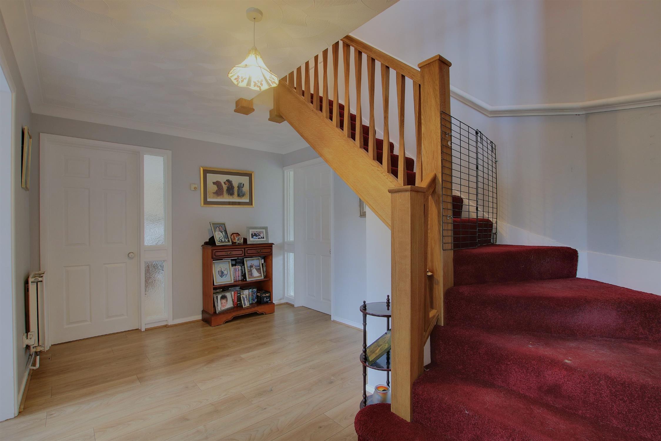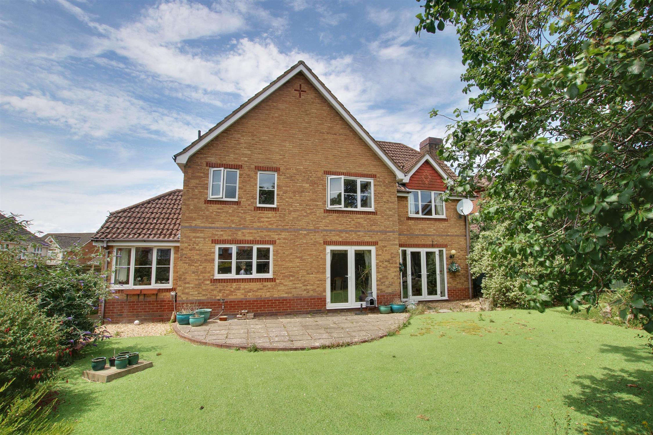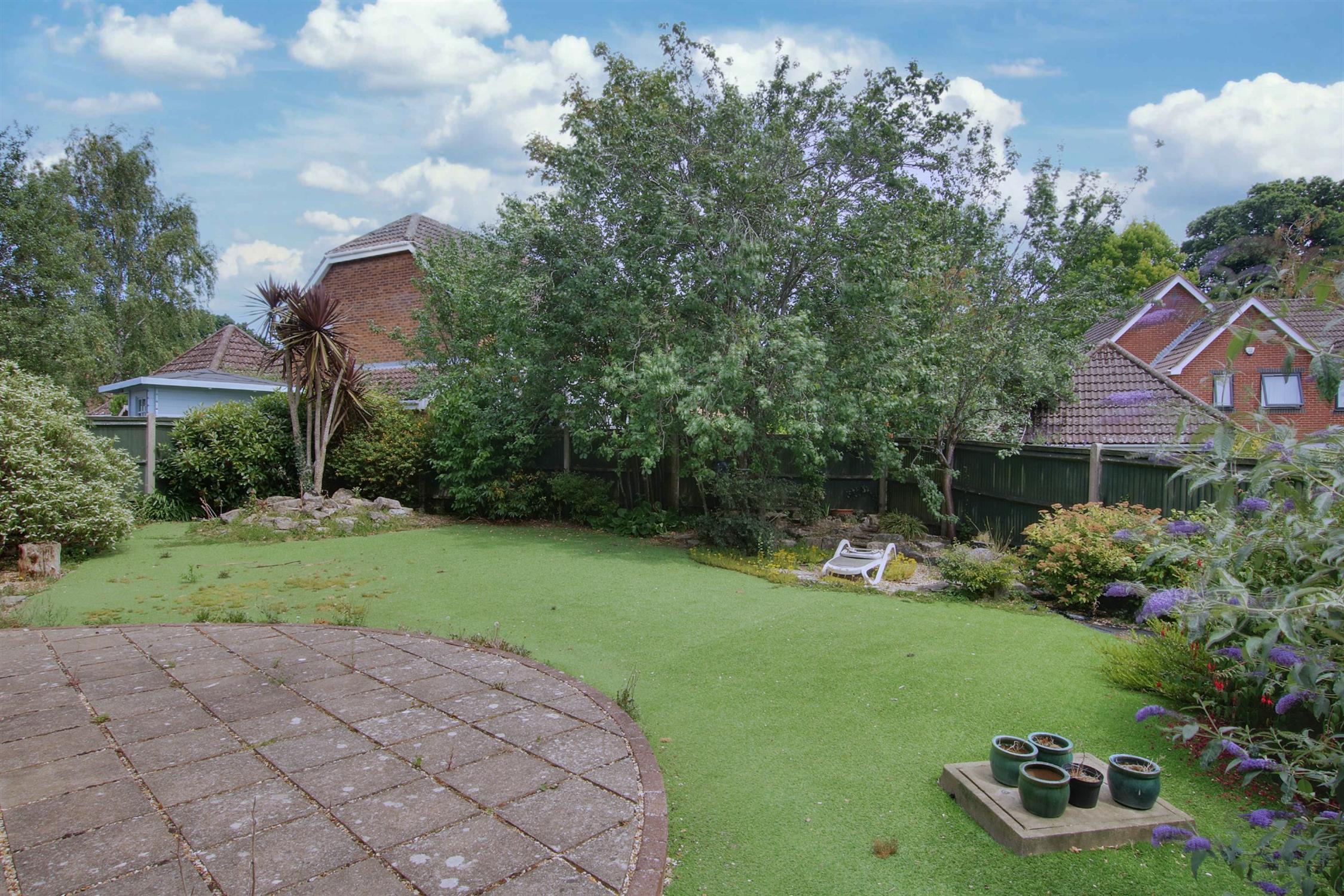 To the front is a generous block paved driveway providing off-road parking for at least three to four cars leading to the detached double garage with remotely controlled up-and-over door, loft storage, power, light and personal door to the side. There is gated access to the rear garden which is enclosed by close-board fencing and a large area laid with artificial turf for low maintenance with well-stocked flower and shrub borders, and mature trees providing a good degree of privacy and seclusion.