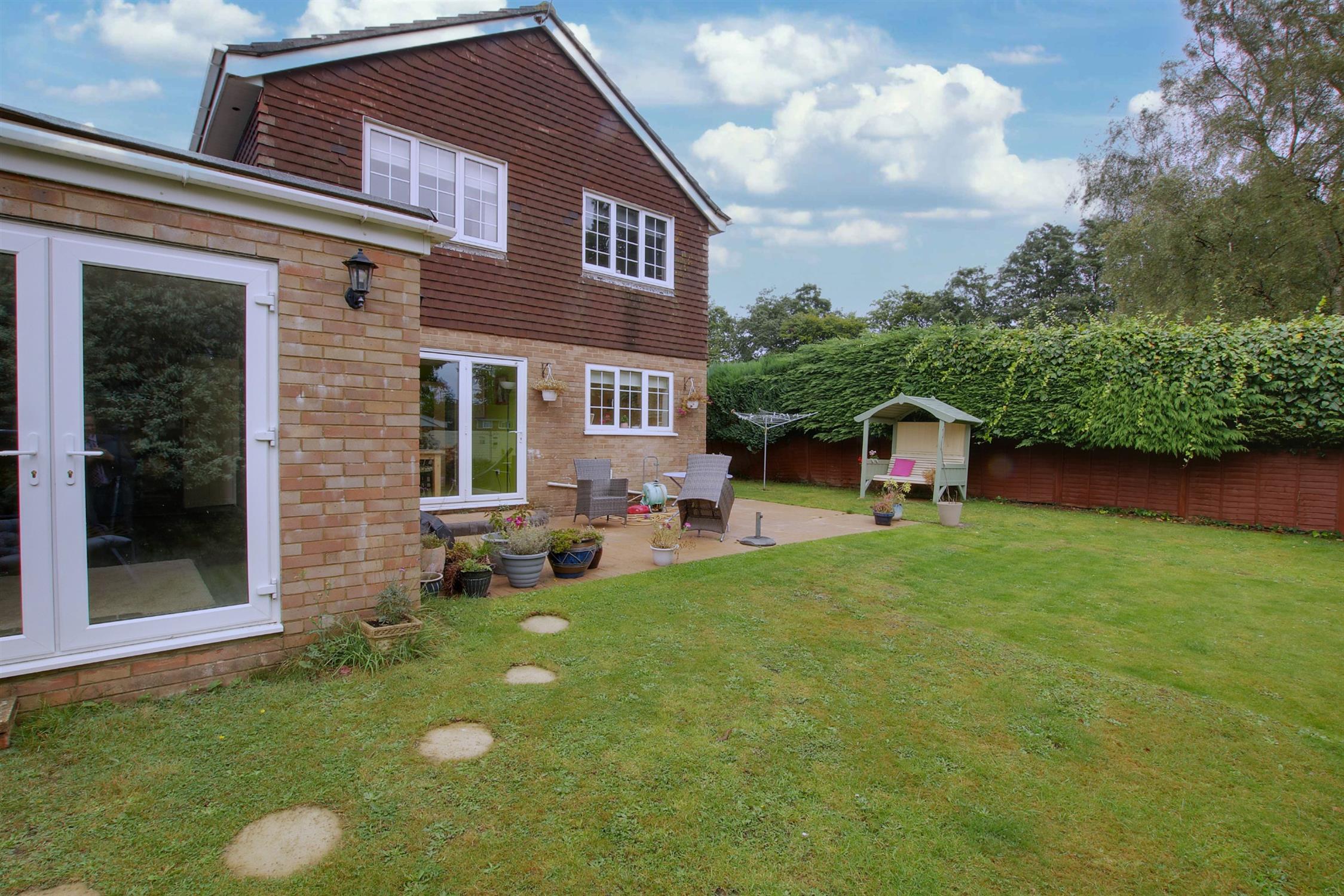 The property is approached via a driveway providing off-road parking for two or three vehicles, fronting a single garage. Mature hedgerows and planting flank the generous corner plot gardens. A gate to the side of the house leads to the southerly aspect, enclosed, rear garden, which is mainly laid to lawn with a patio entertaining area, ideal for al-fresco entertainment. The large corner plot would lend well to further extension of the property subject to relevant permissions.